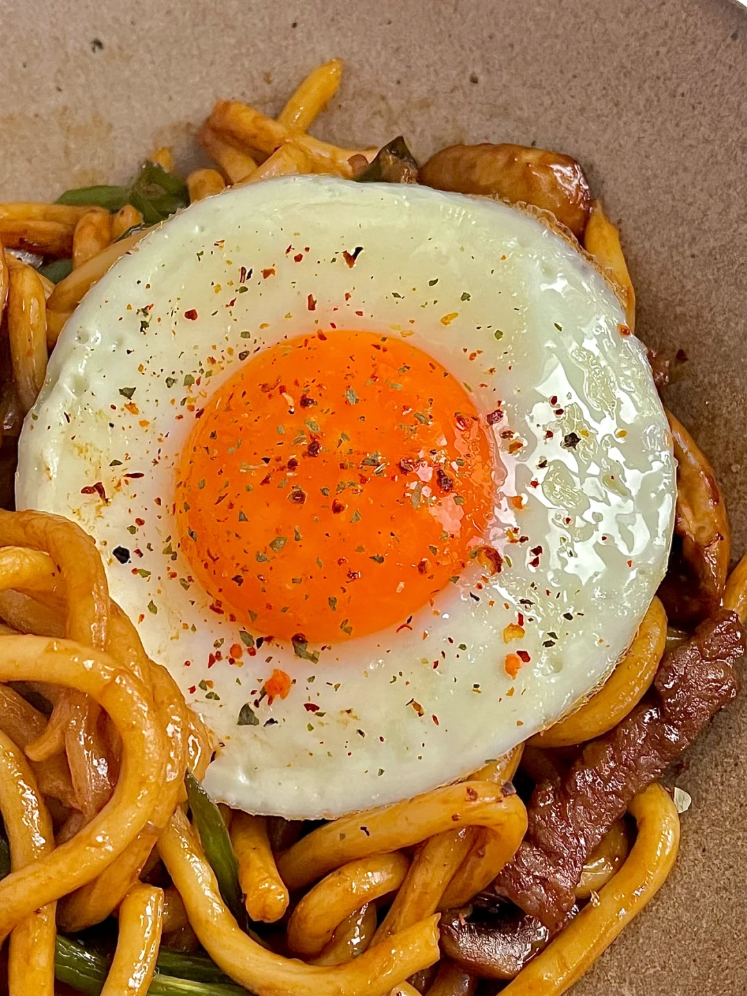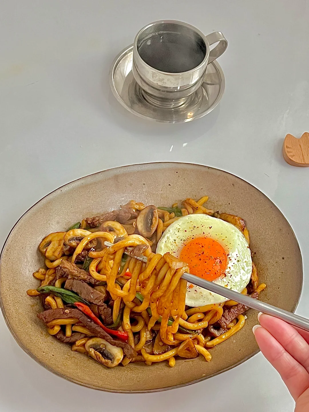 周末睡到自然醒,给自己做了一份早午餐,黑椒牛柳炒乌冬,就爱这种浓浓的酱汁包裹着面条,每一口都能吃到惊喜,真的好好吃😋