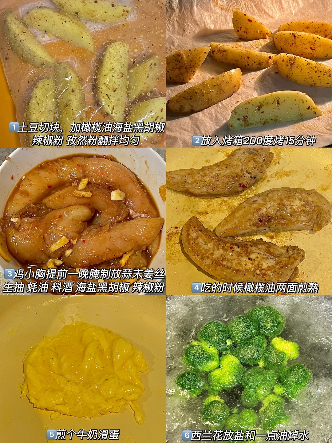 1️⃣小鸡胸我是提前一晚腌制(放生抽 料酒 蚝油 蒜末 姜丝 海盐黑胡椒粉 辣椒粉)搅拌均匀