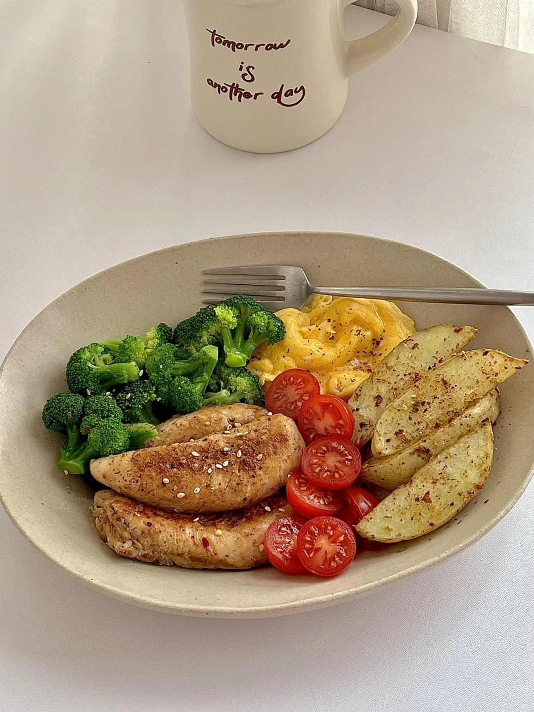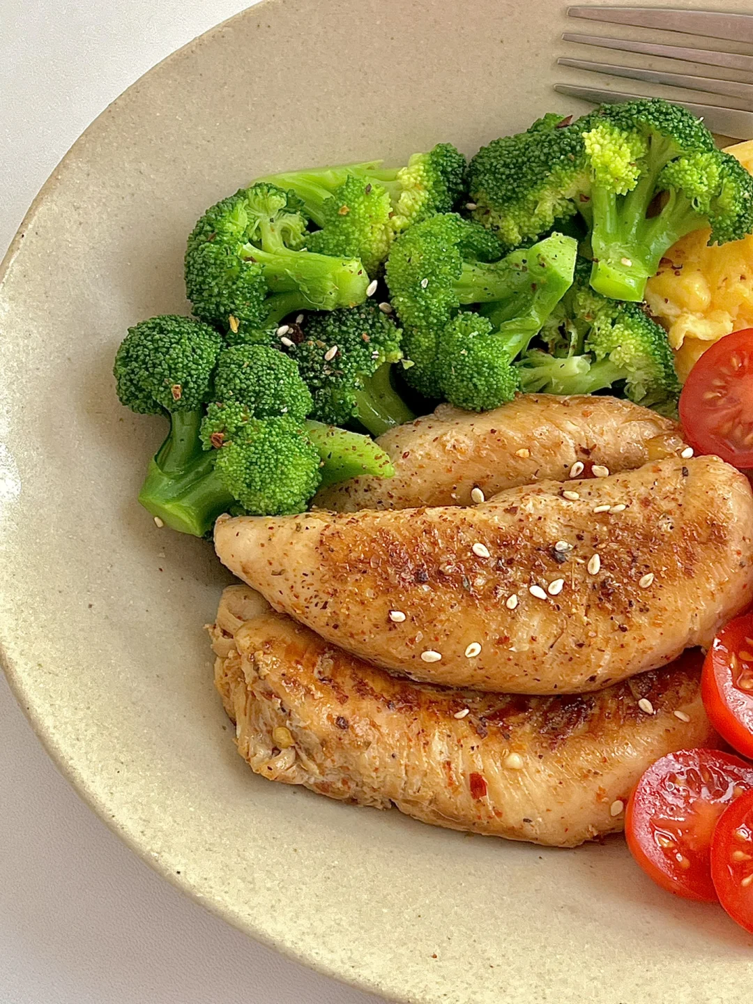 3️⃣鸡胸肉放少许油煎至两面金黄熟透即可。