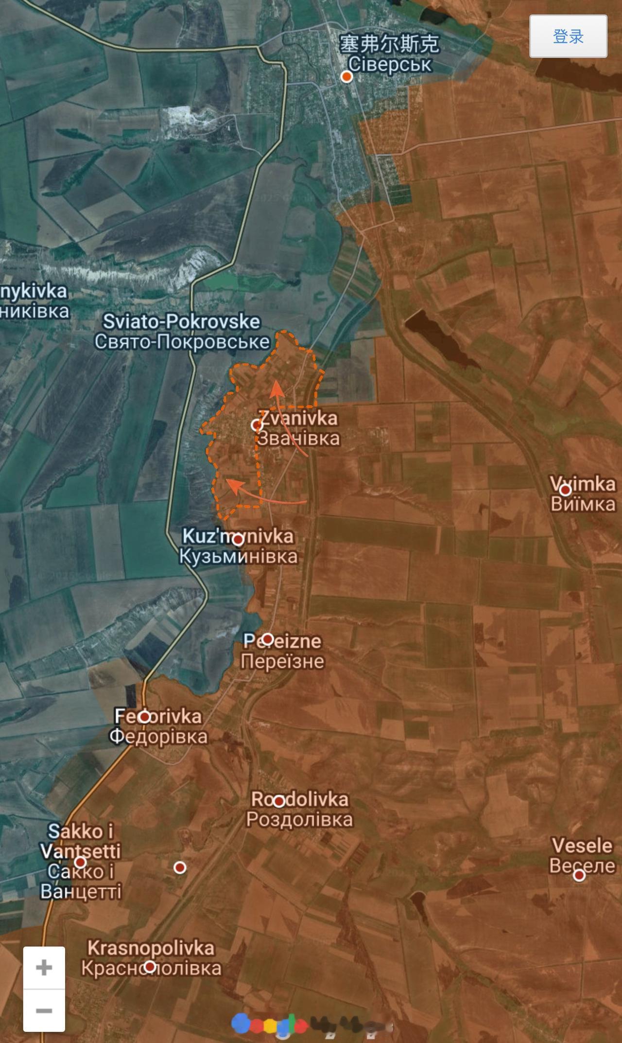 俄乌战线1367天抢先观看版 1.红利曼: 在过去的24h内,俄军继续沿着北顿涅茨克河推进,控制了亚姆比尔南部的森林地区 2.塞弗尔斯克: 在过去的24h内,俄军完全攻占了Zvanivka 3.康斯坦丁尼夫卡; 在过去的几天里,俄军重启了对该方向的进攻,并沿着公路占据了部分阵地 4.红军村: 在过去的48h内,俄军从西面攻入了季米特洛夫,试图完全包围在该市的守军。同时,俄军控制了里夫尼一半的区域 5.波克罗夫西克: 在过去的24h内,俄军继续沿着T-01-04公路推进,控制了新兹波里日扎与其东面的大片田野,同时俄军还清理了里布涅以南的突出部 6.胡里艾伯勒: 在过去的24h里,俄军完全攻占了泽列尼盖,并占据了一半的维索凯
