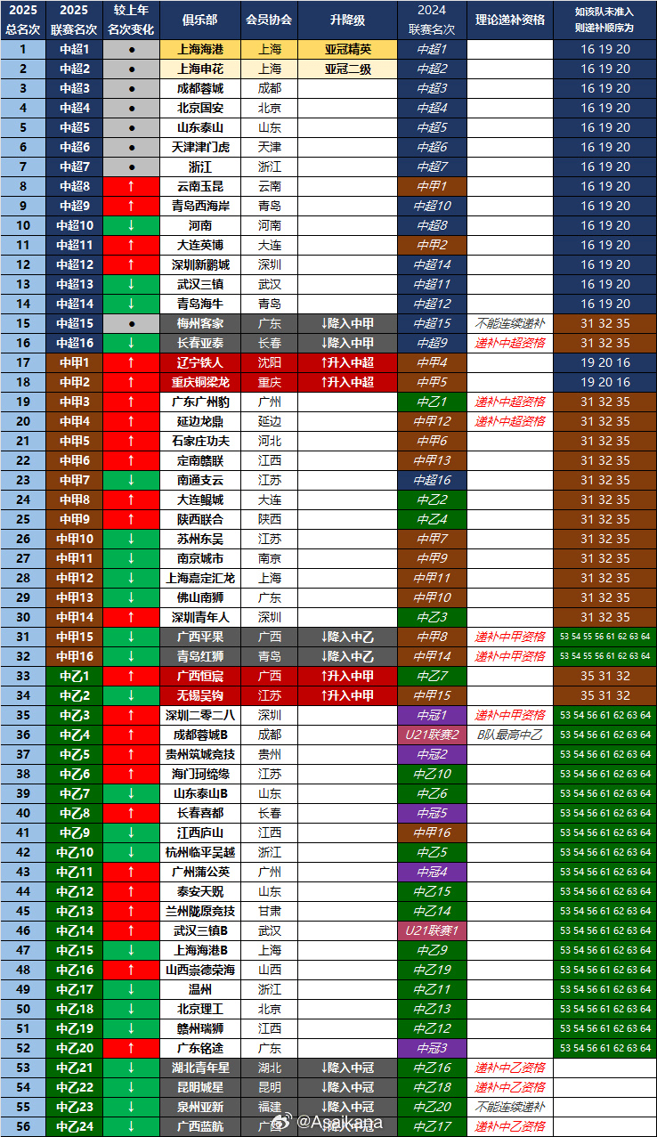 虎扑11月23日讯德转管理员朱艺在社媒公布了2025赛季中国三级职业联赛总排名情况。