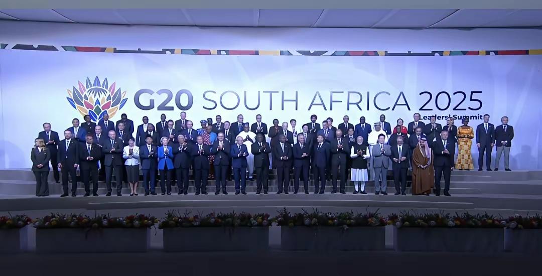11月22号晚上,本年度的南非20国集团G20峰会的全家福大合照终于出来了。 首先最中间的是主席国南非的总统拉马福萨,他的左手边是巴西总统卢拉,右手边则是非洲联盟的代表。 第二,左手边依次往下分别是澳大利亚总理阿尔巴尼斯,中国代表,欧盟的两位领导,印尼代表,日本首相高市早苗,土耳其总统埃尔多安等人。 第三,右手边依次往下,是加拿大总理卡尼、法国总统马克龙、德国总理默茨、印度总理莫迪、韩国总统i李在明、沙特外长费萨尔等。 从这张合照图看出,我们的国家越来越强大了!