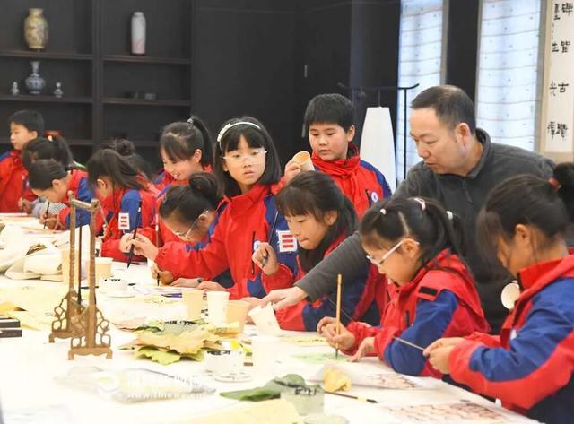 11月21日,铜陵师范学校附属第二小学的学生们在进行创意书法创作。据了解,为弘扬中华优秀传统文化,激发学生的艺术创新精神,该校联合市图书馆开展“万物皆可书”创意书法实践活动。(记者刘敏)