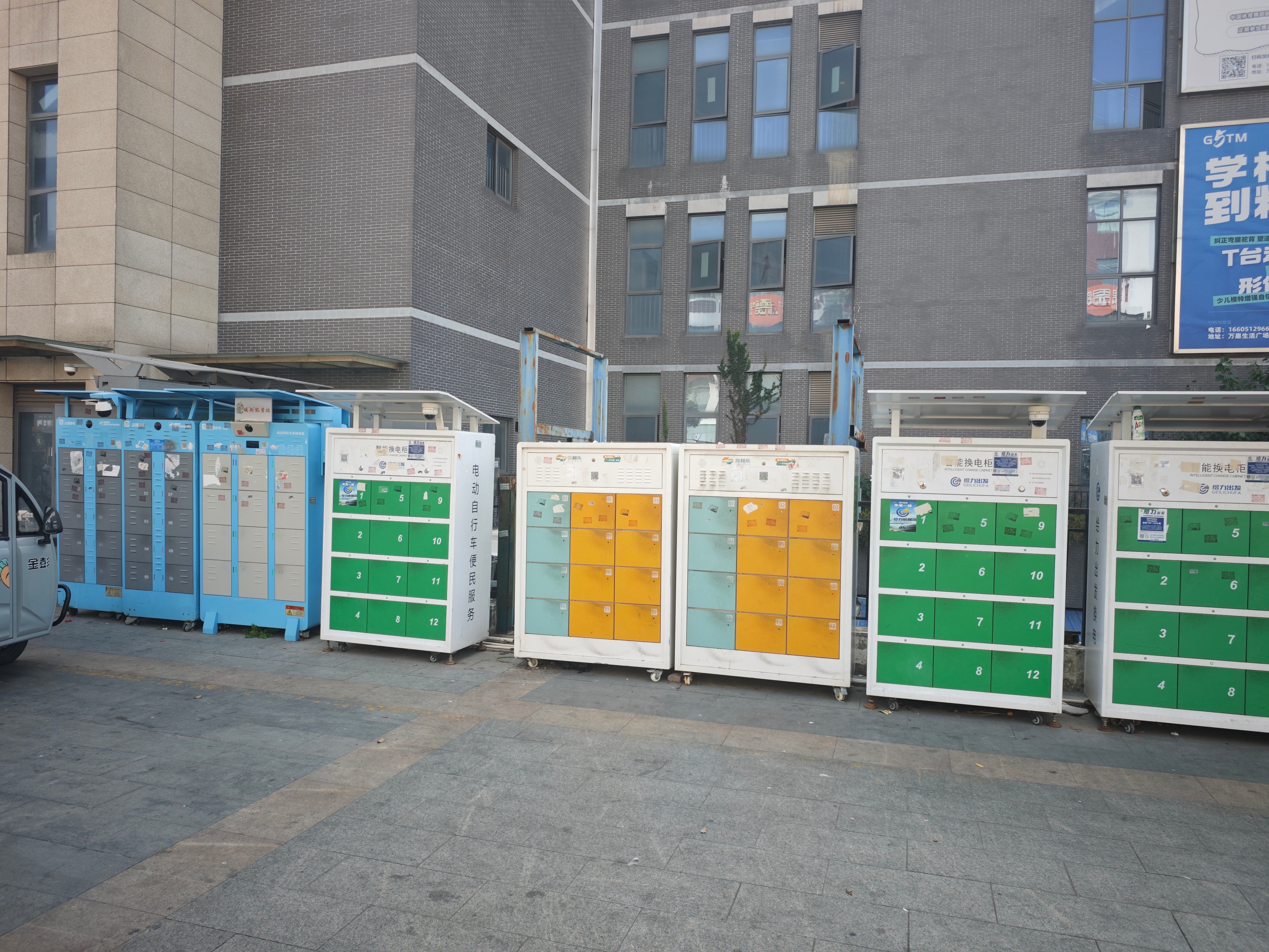 苏州一个商场门口居然有3个品牌的两轮电瓶车的换电柜,看来在两轮电动车领域,换电业