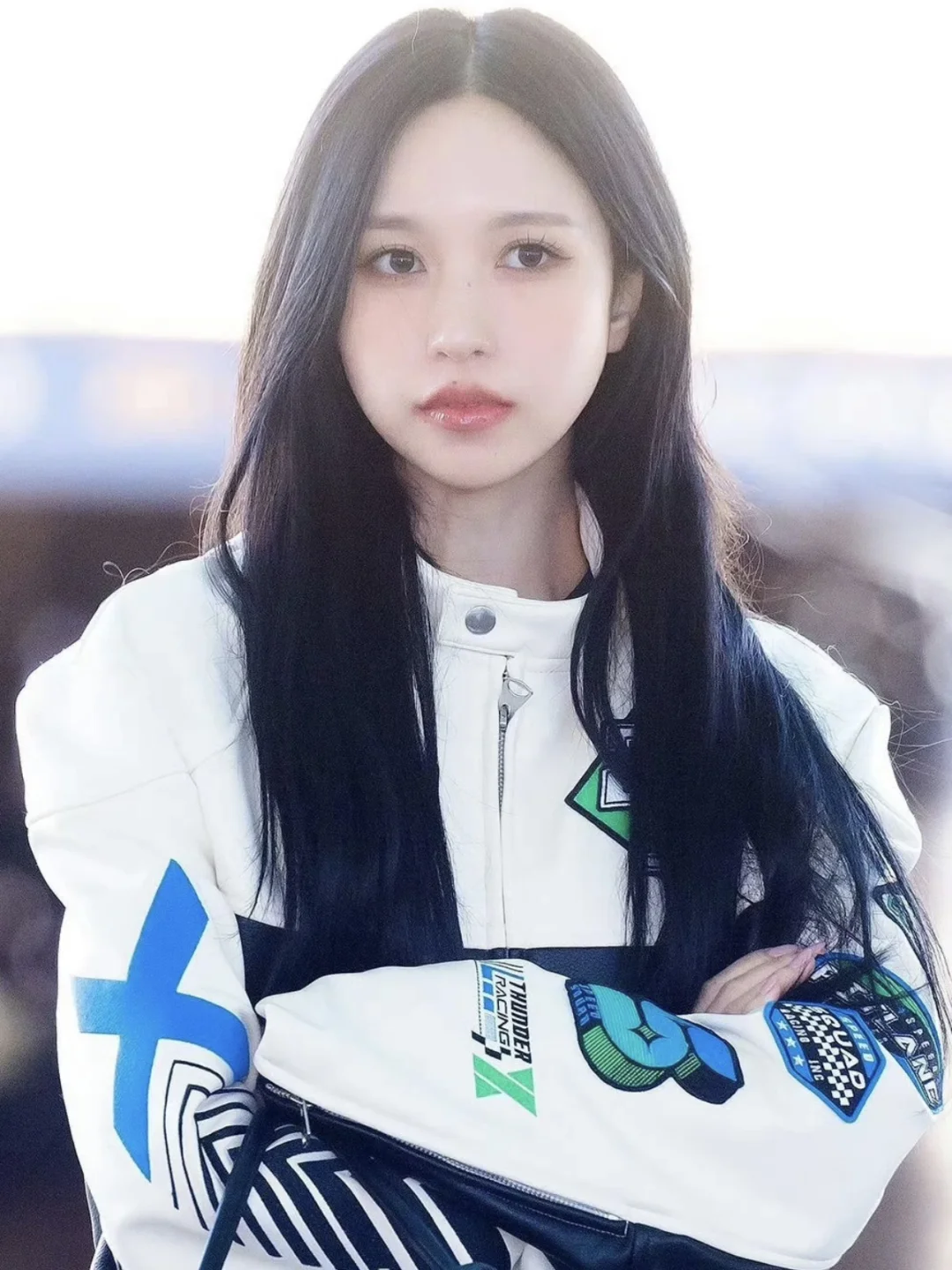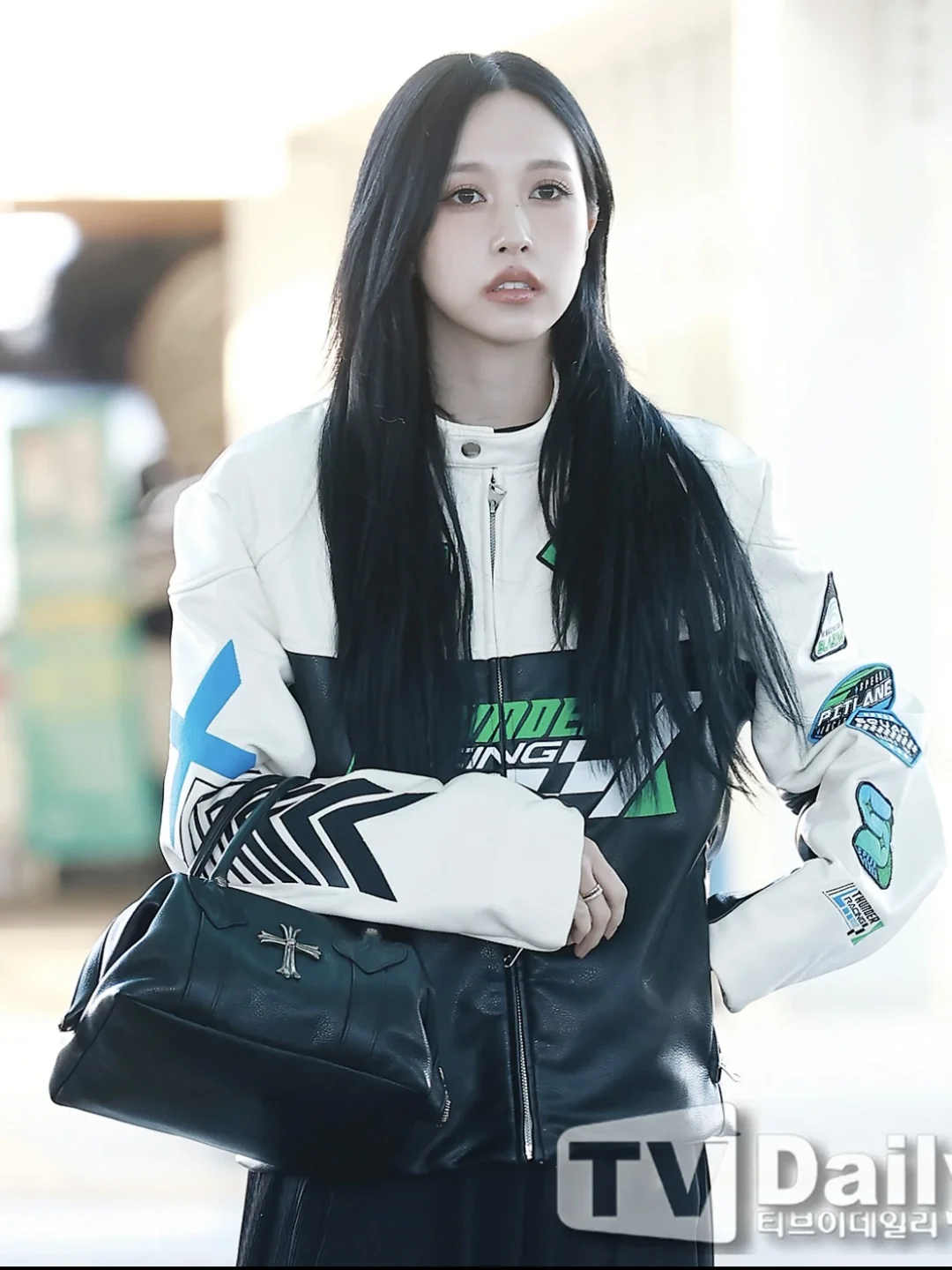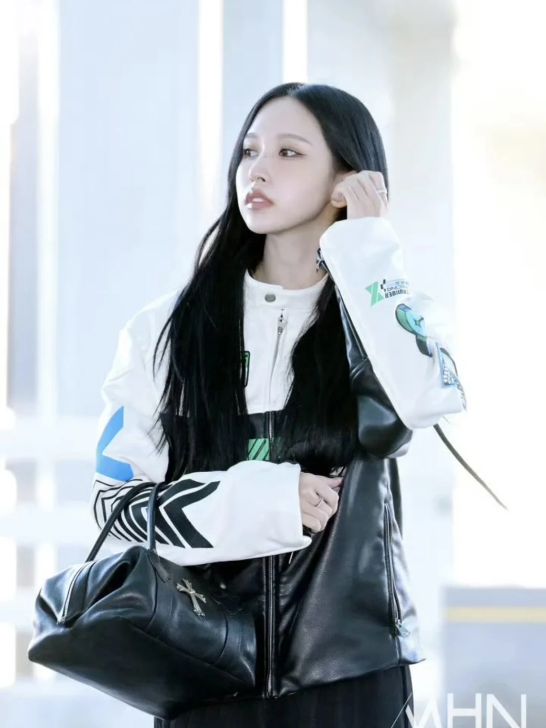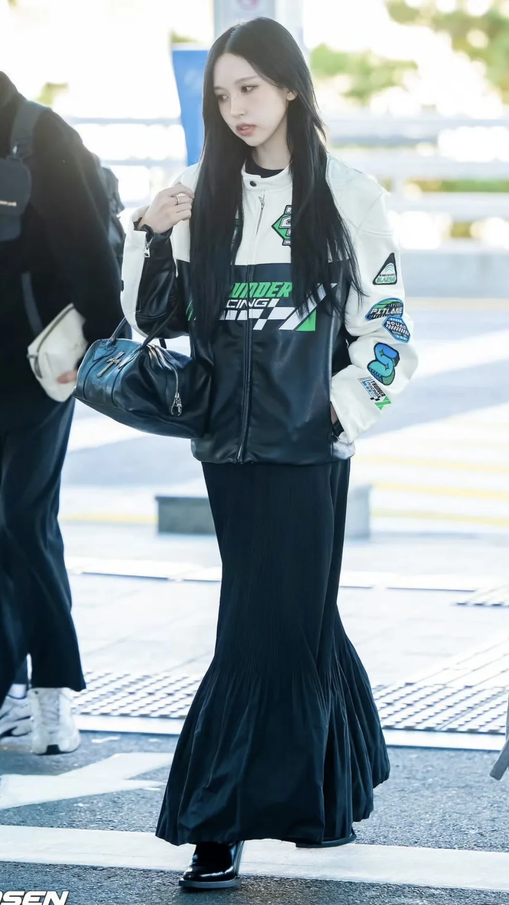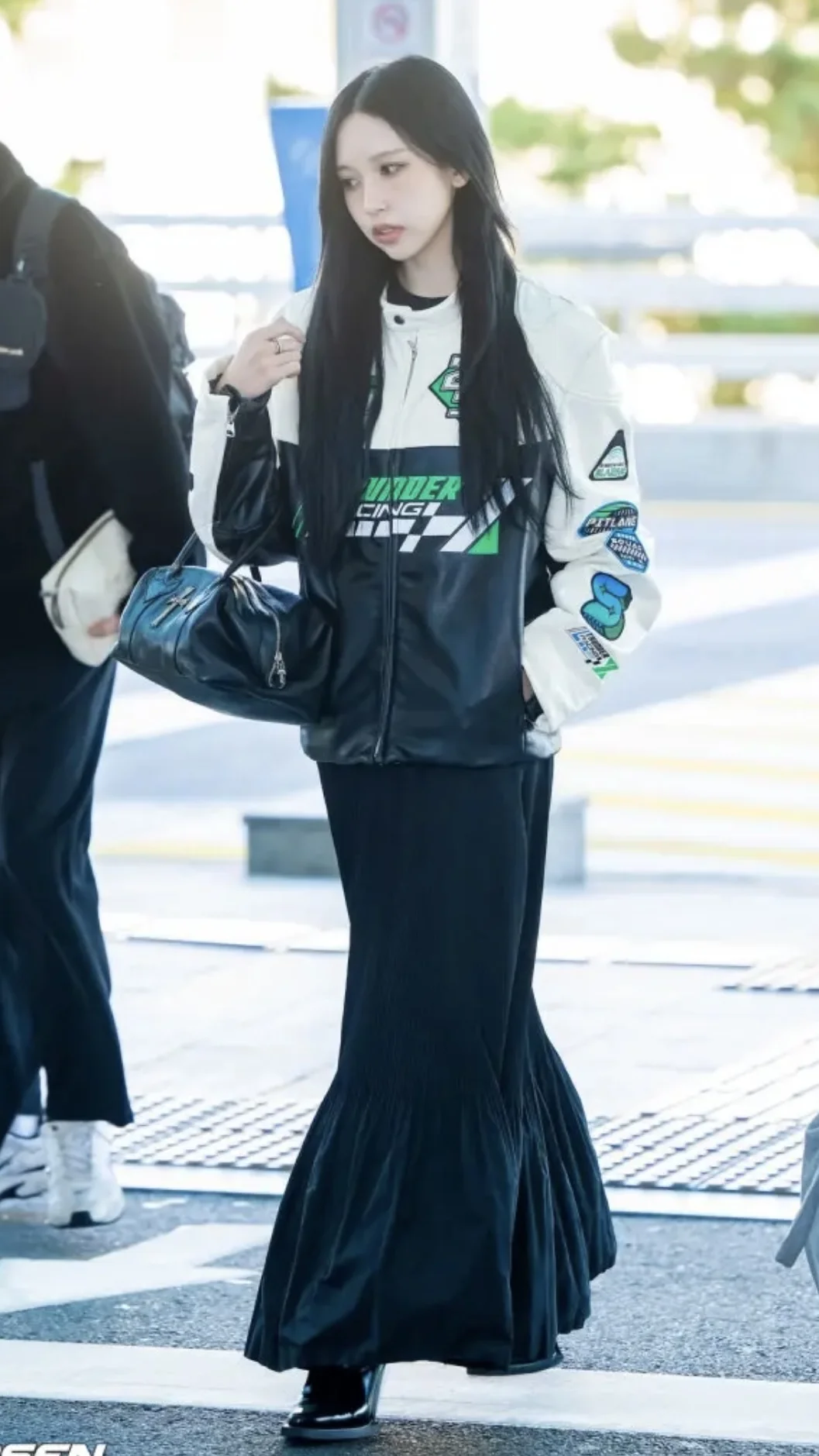 Mina名井南的机场时尚教科书!机车夹克+长裙