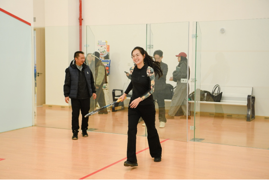 在场地内追着壁球击打几个来回后,记者也感受到这项新兴运动的魅力之处:要集中注意力,反应迅速,最重要的,不论是挥拍击球,还是听到壁球在墙面上的撞击声,都十分解压。