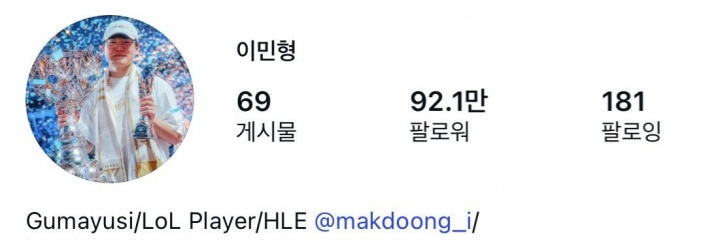 Gumayusi更改ins简介:Gumayusi/LoL Player/HLE