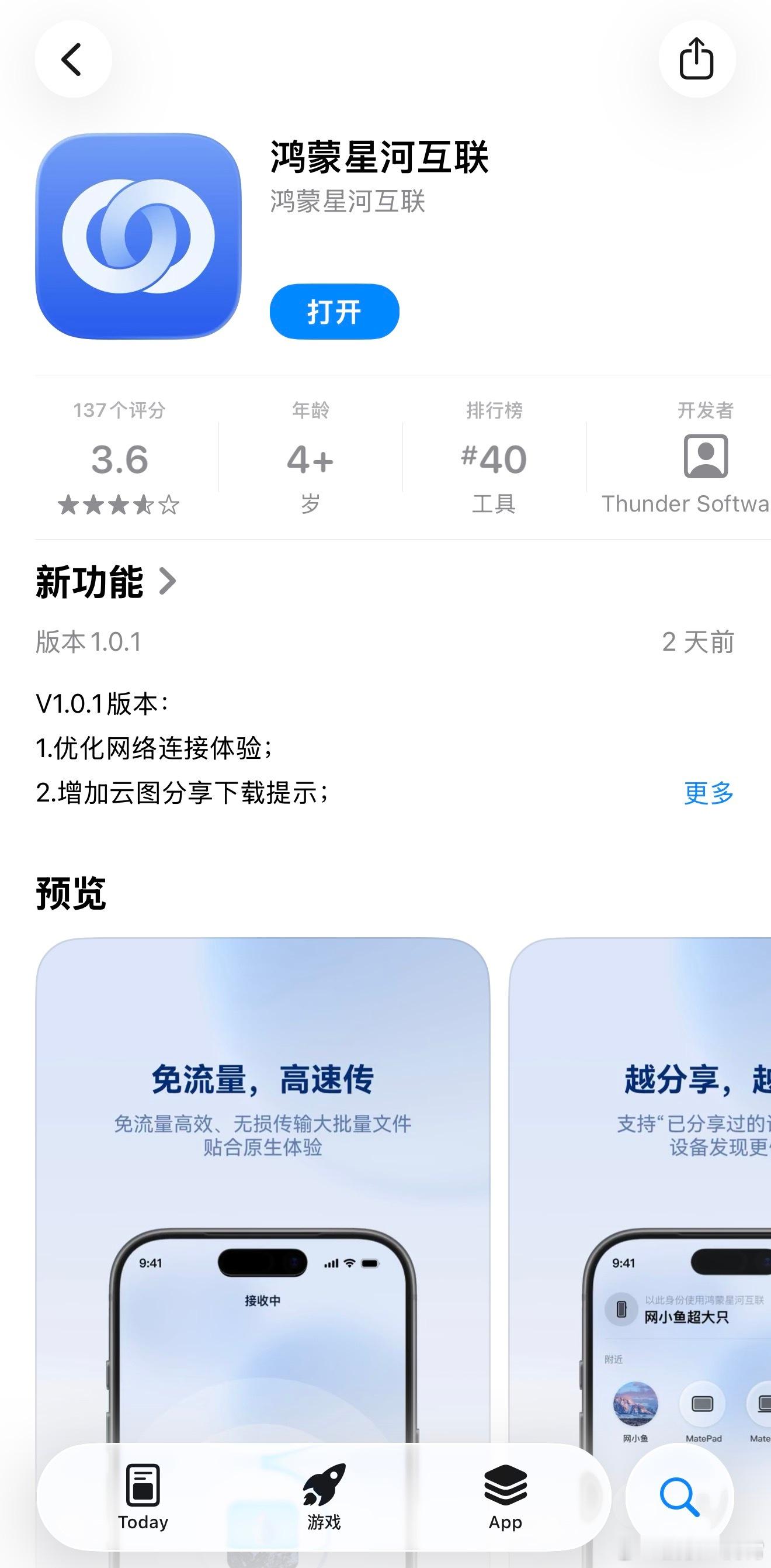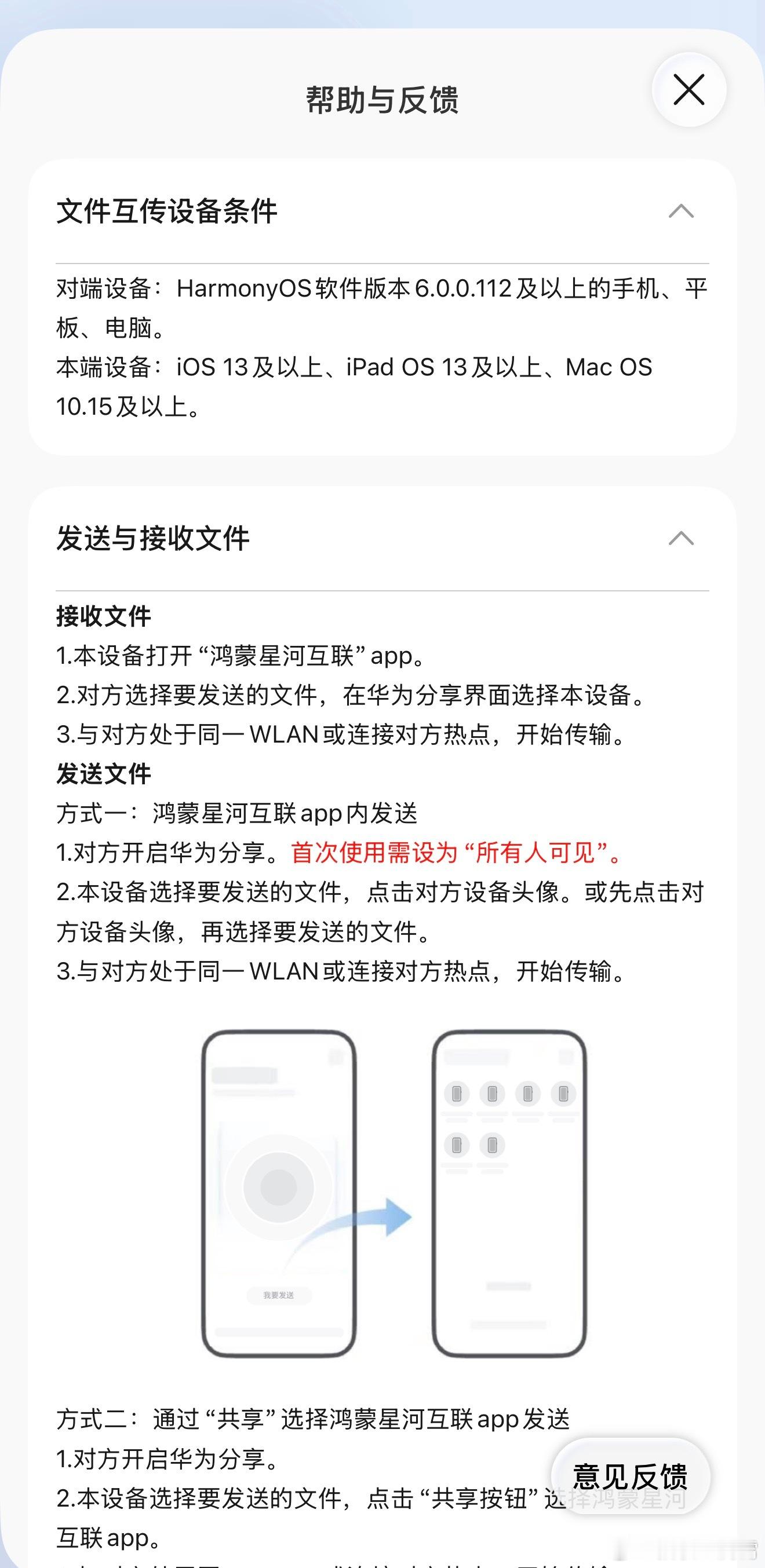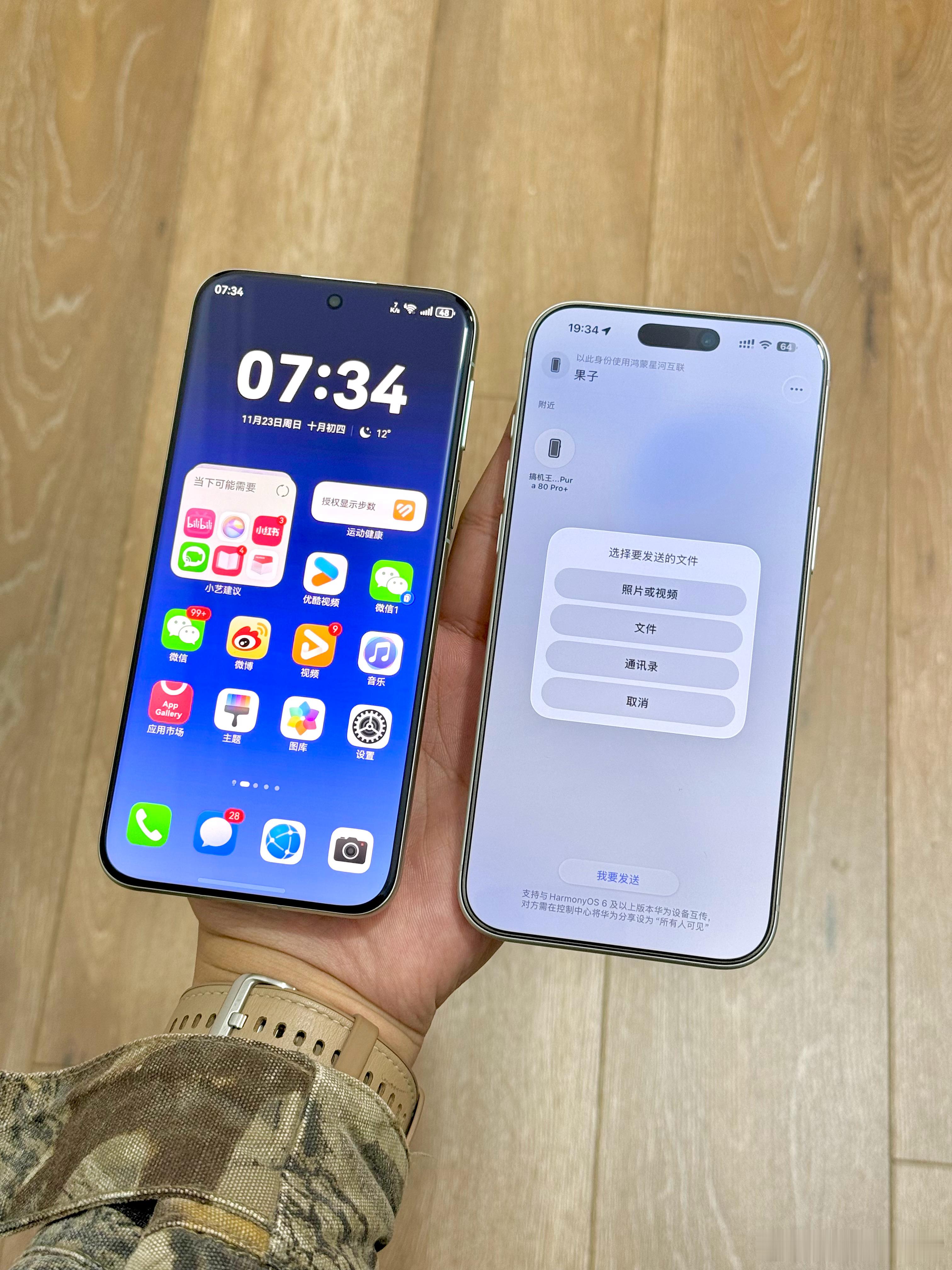 华子的「鸿蒙星河互联」App上架了,完美解决正在用华为和iPhone朋友的文件传输问题。替大家试了下,只要华为手机升到鸿蒙6.0.0.112及以上版本并打开华为分享就可以直接用,不用再单独下载App,iPhone上可以直接发送照片、视频、文件和通讯录到华为手机上,而华为手机上点开分享就能找到iPhone点击发送,怎么样