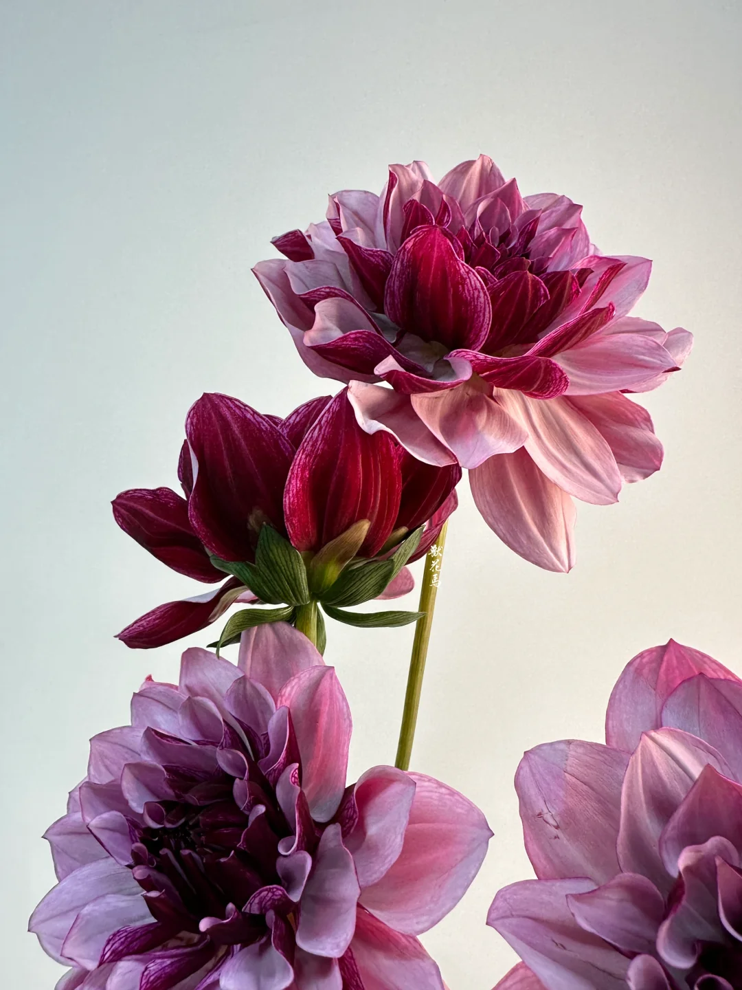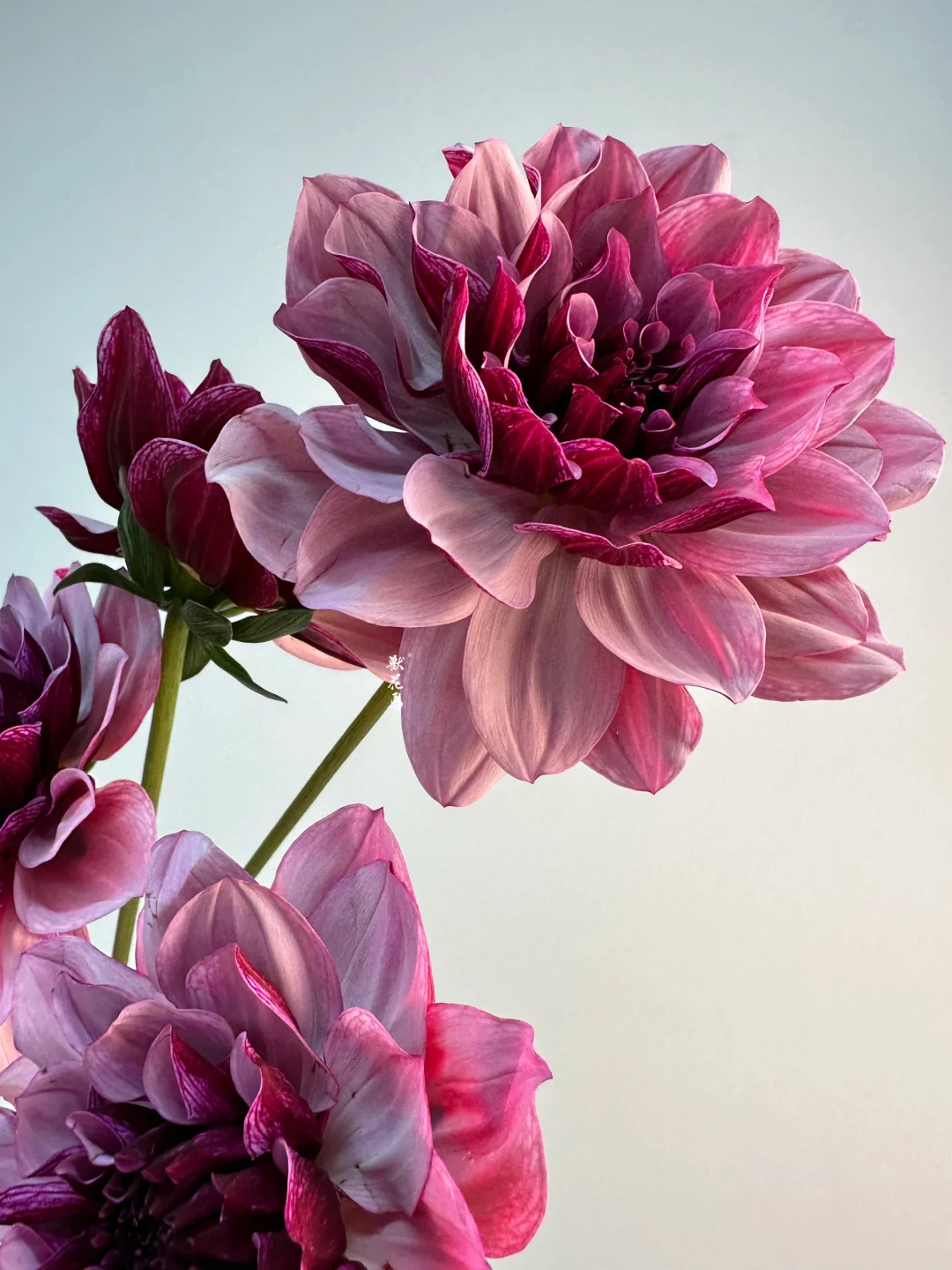 品种名叫凯撒创意,另外一个名字也叫“黑醋栗奶油” 很有画面感的名字 花瓣的正反两面不同色,非常有层次感 花语:大方、富丽、新颖、感激 花期:夏季3-5天,冬季5-7天 养护(大丽花的花瓣容易擦伤,养护尽量不要挤在一起) 1️⃣换水:夏季每日一次,水中加营养液或消毒剂 2️⃣清洗:花瓶清洗干净,擦掉水渍,花杆剪根冲洗 3️⃣水位:花瓶高度1/2 4️⃣修剪:根部以上1~2cm处45°斜剪 |TIPS|长按自取|感谢喜欢|欢迎分享