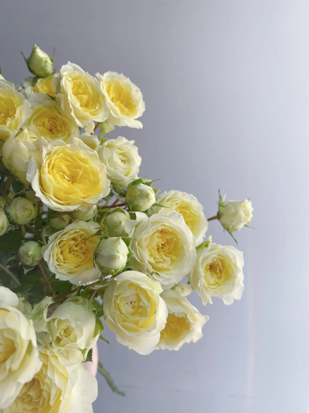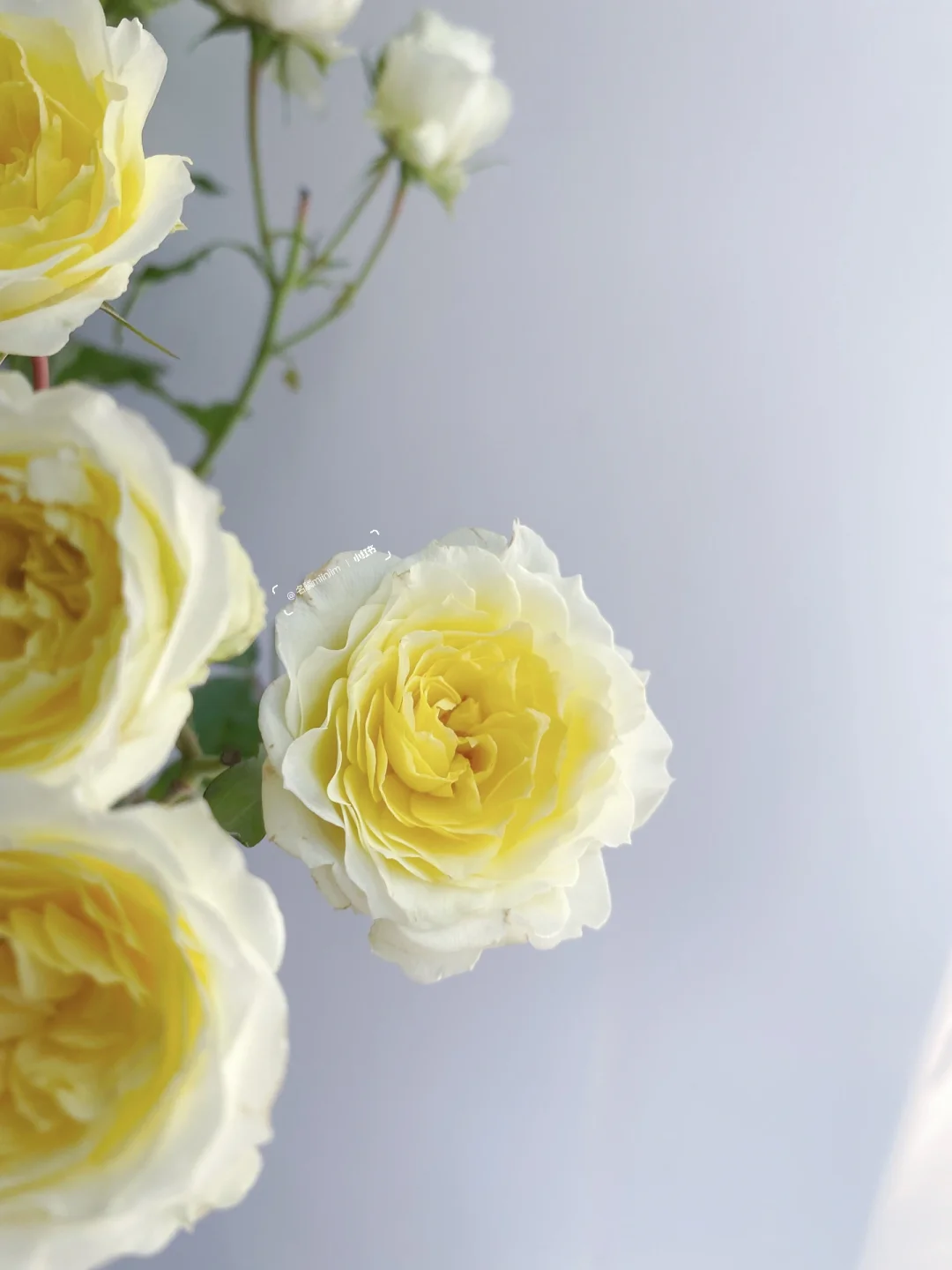 阿莫尼如的花瓣是渐变感的奶黄色,温柔明亮,是非常好看的黄色系多头玫瑰,单朵的花头比较小,但花瓣很多,可以轻轻松松开成大饼[扯脸H],所以花期过了以后也会疯狂掉瓣,这个是比较让人崩溃的。不过每个花的花期本就不同,爱慕它的美丽的同时,就也得接受它的掉瓣。