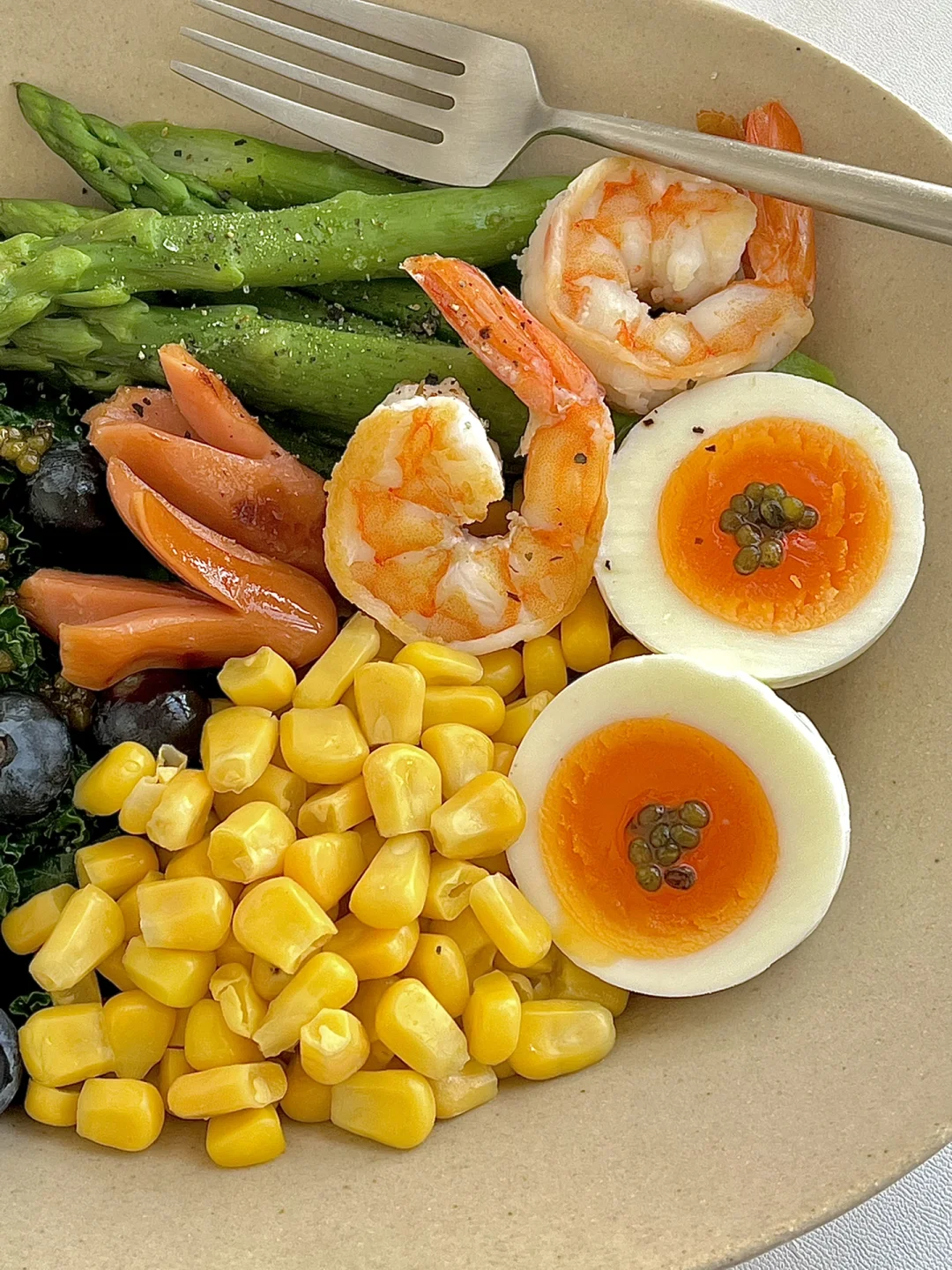 ☀️工作日早餐|芦笋虾仁鸡蛋玉米沙拉🥗