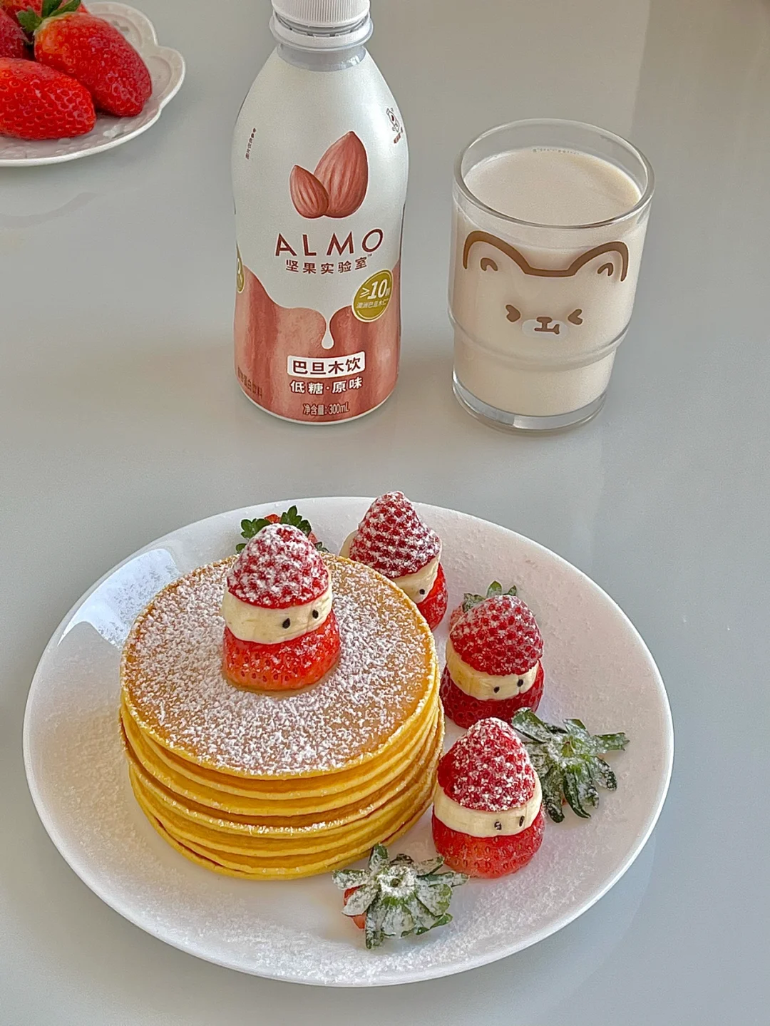 ️今日份早餐:雪人松饼,一杯巴旦木奶