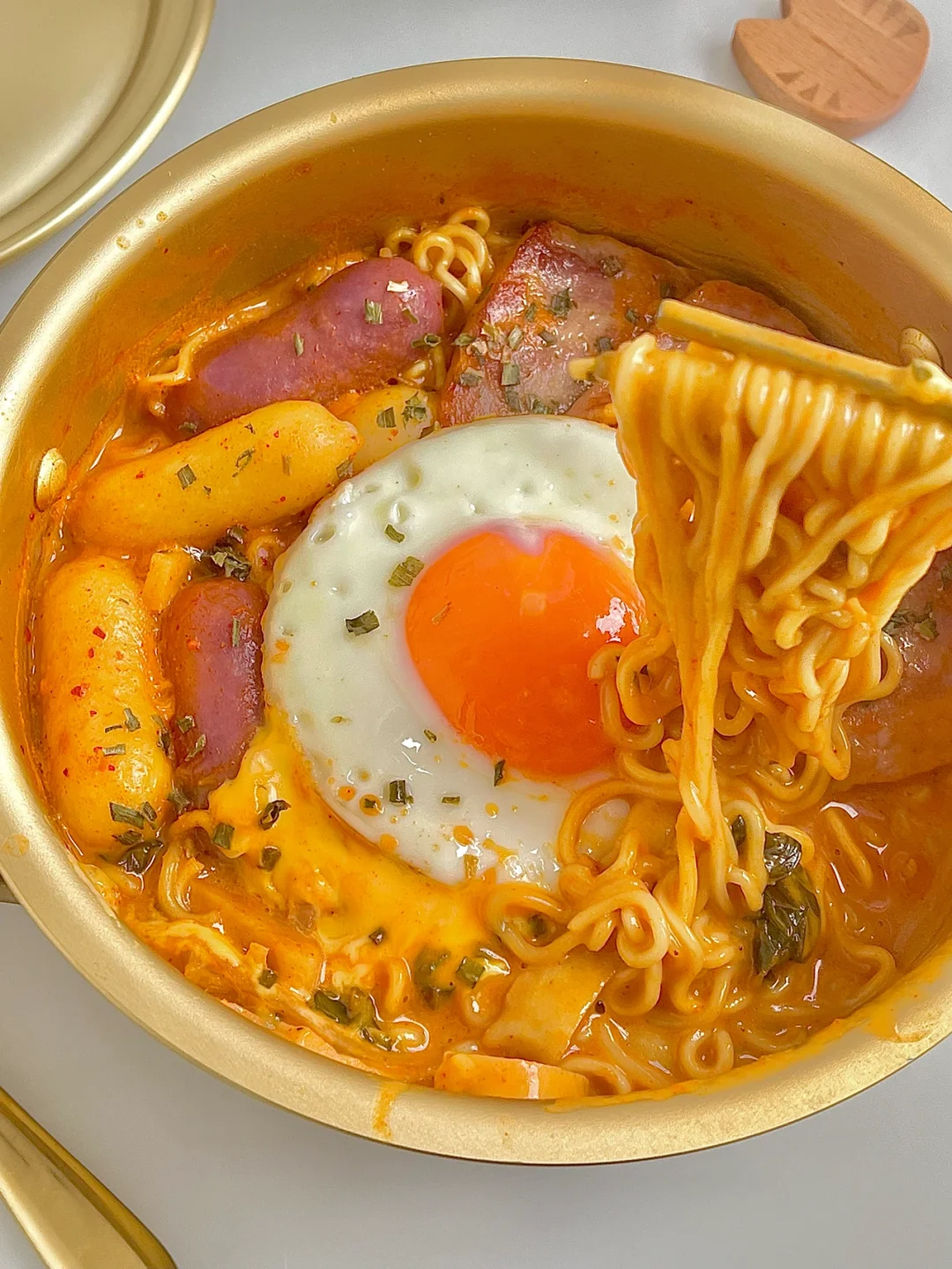 ☀️休息日早餐分享|生日的芝士拉面年糕锅😋