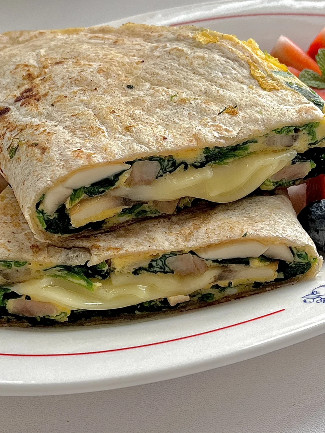 菠菜口蘑鸡蛋芝士卷饼