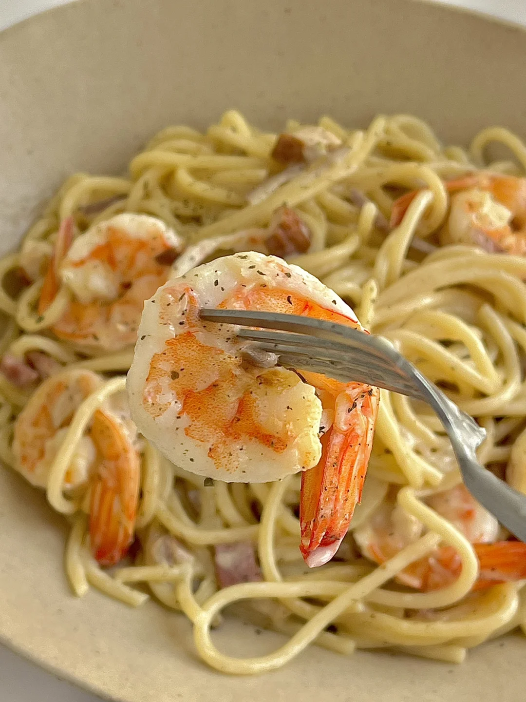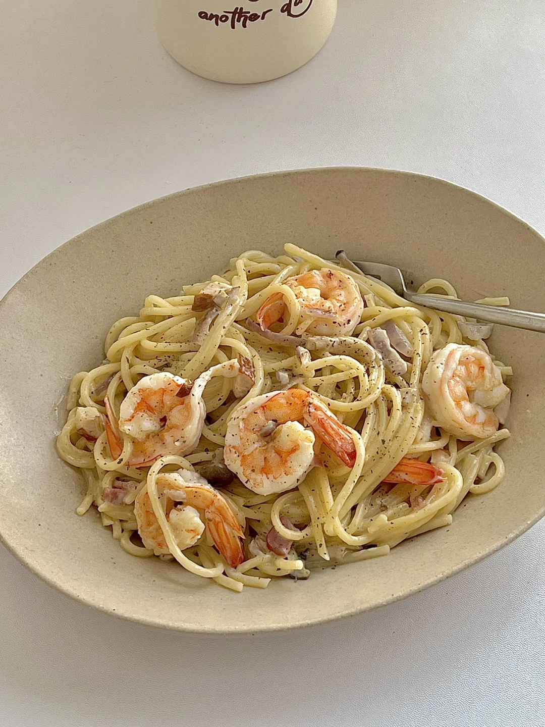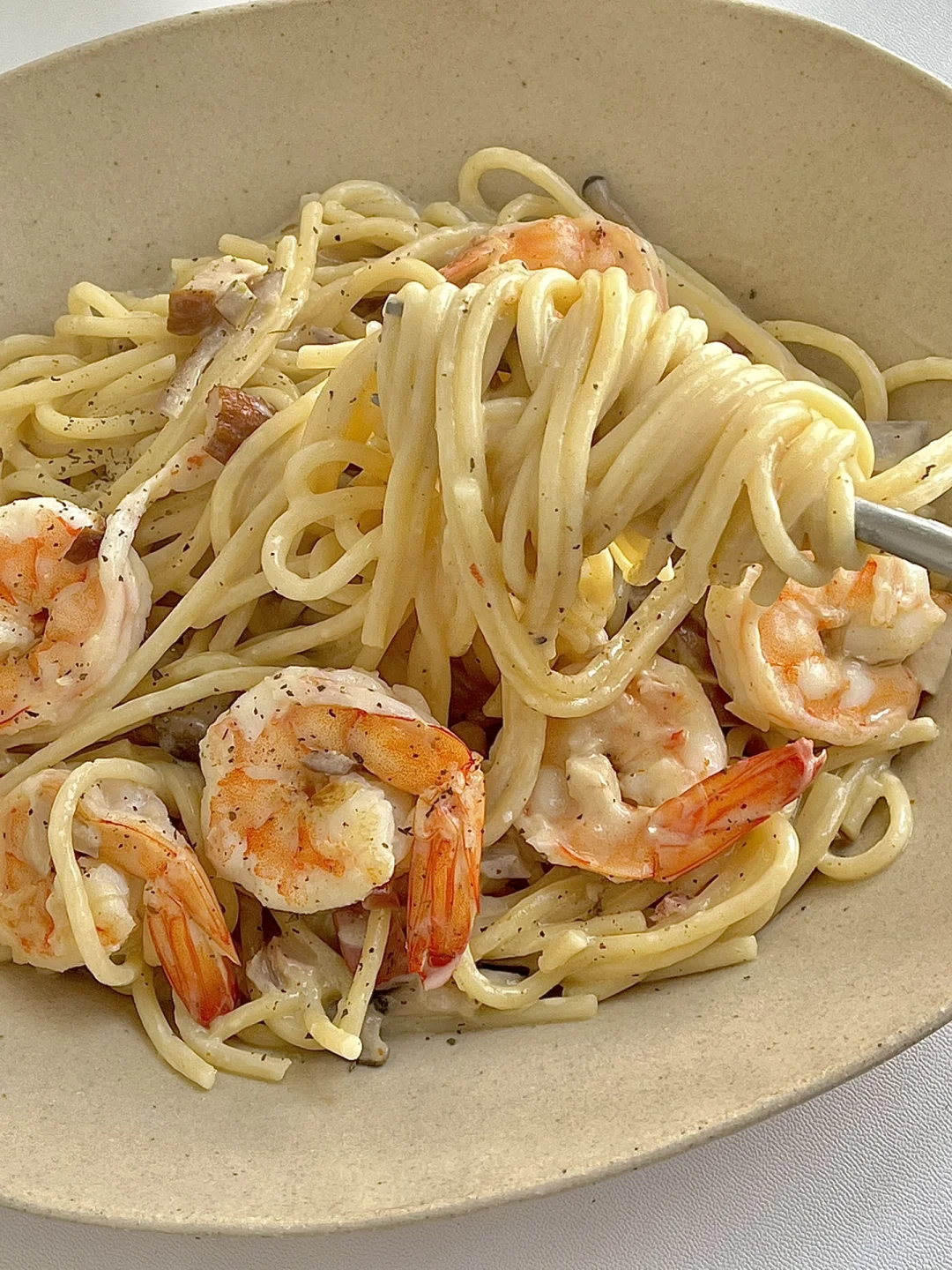 ☀️周末的早午餐|低卡饱腹奶油虾仁培根意面