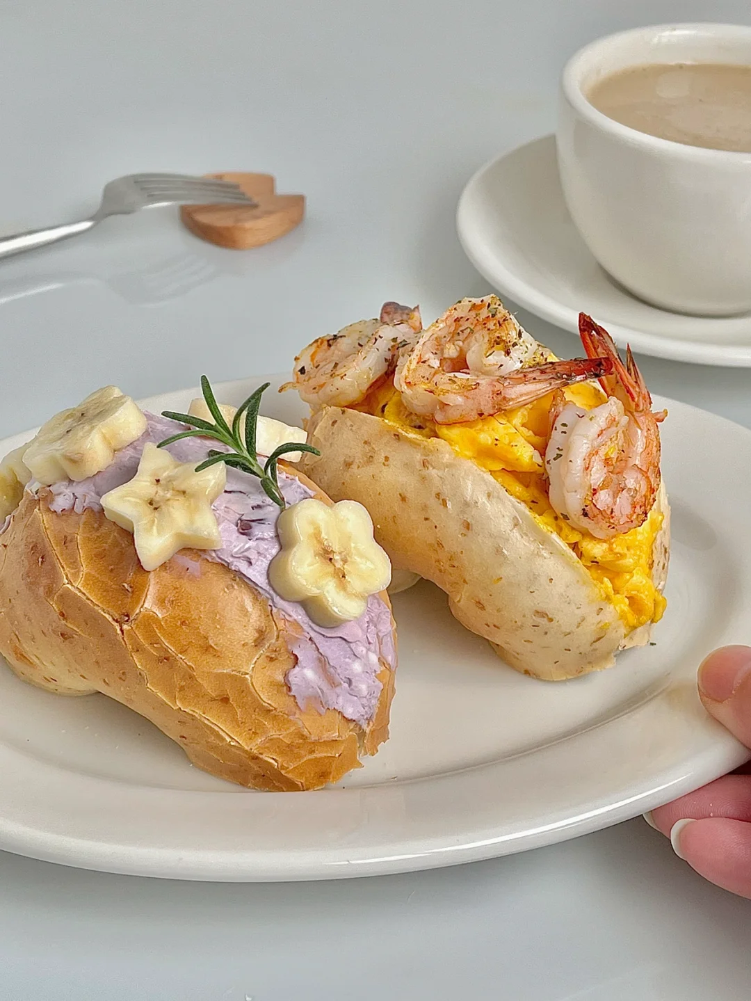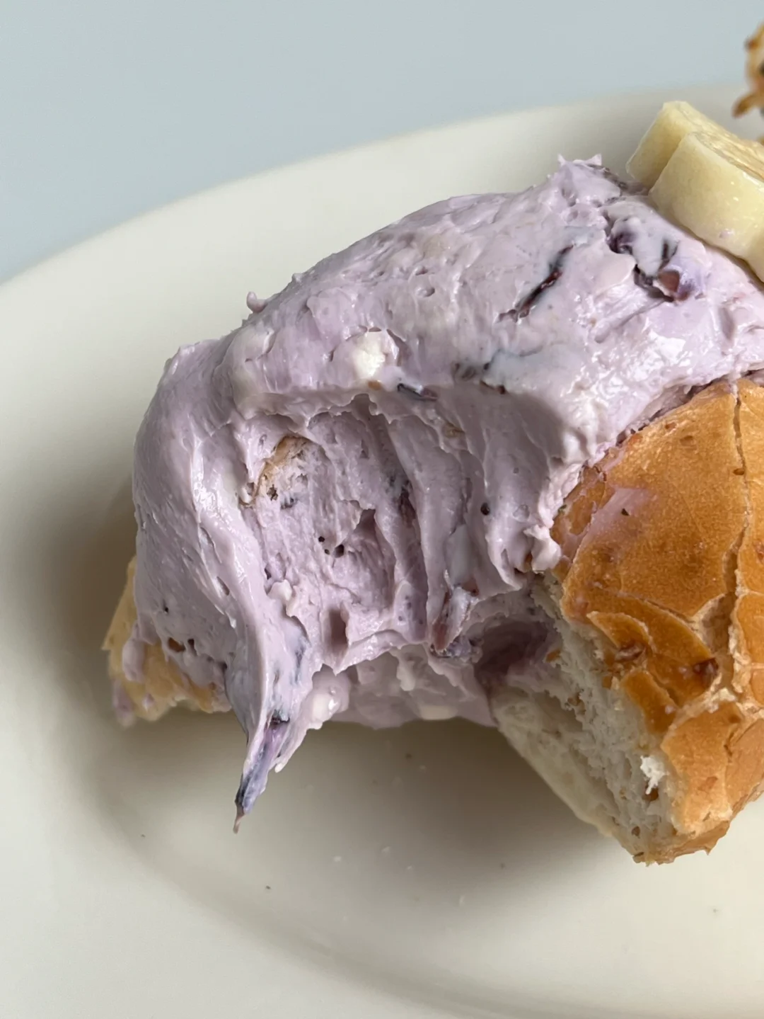 今日份早餐:贝果双拼三明治(蓝莓奶酪香蕉,滑蛋虾仁)一杯热拿铁☕️ . 宝宝们是不是都开始上班了呀,工作日的早上就是忙碌的,本来想拍步骤图也来不及了。这个蓝莓奶酪真的好好吃,而且这个治愈的颜色真的太喜欢了😍。 昨天武汉下雪了❄️,我这个东北人在南方也能看到雪景了😂。 . 祝宝宝们工作顺利呀!