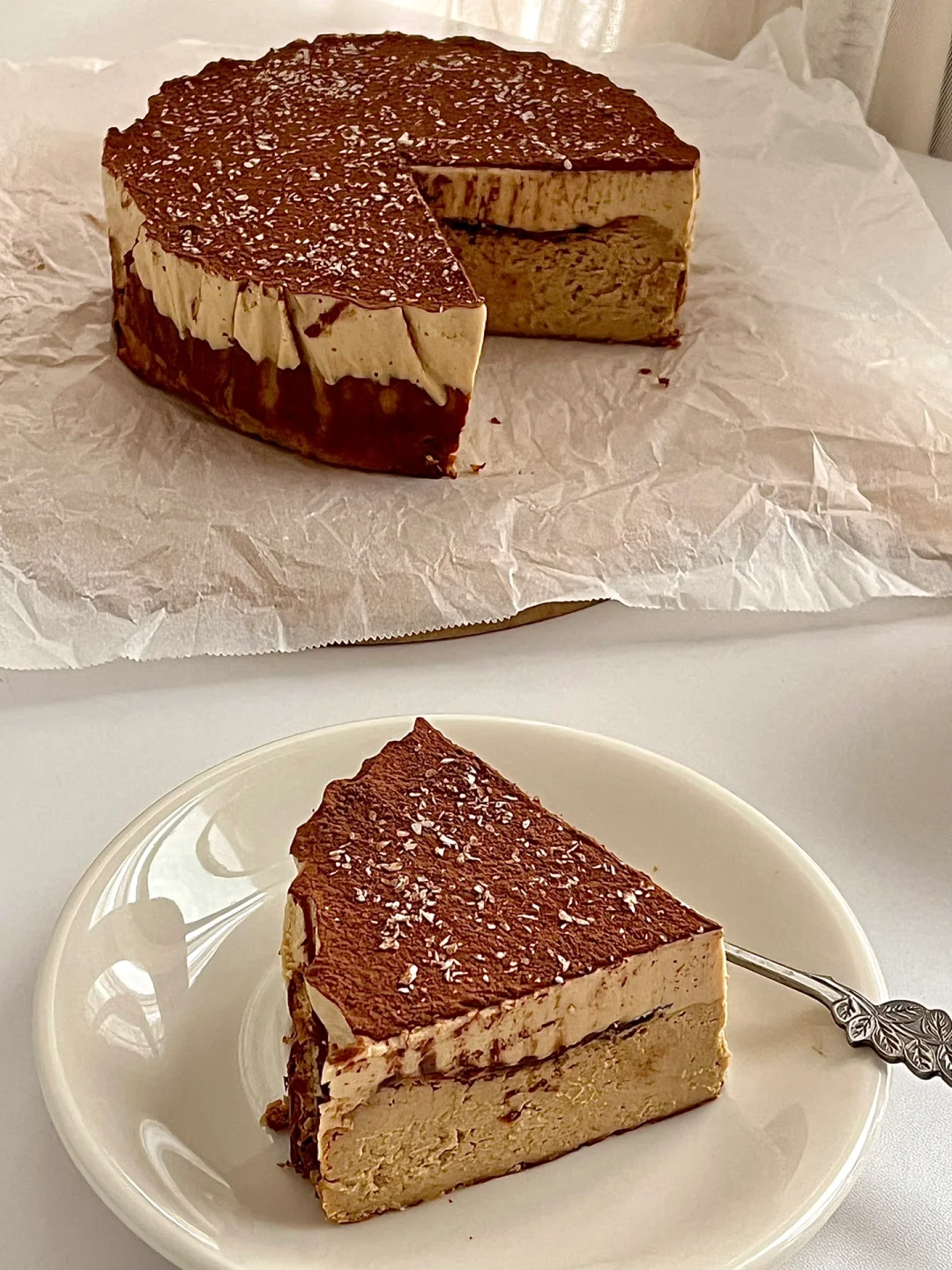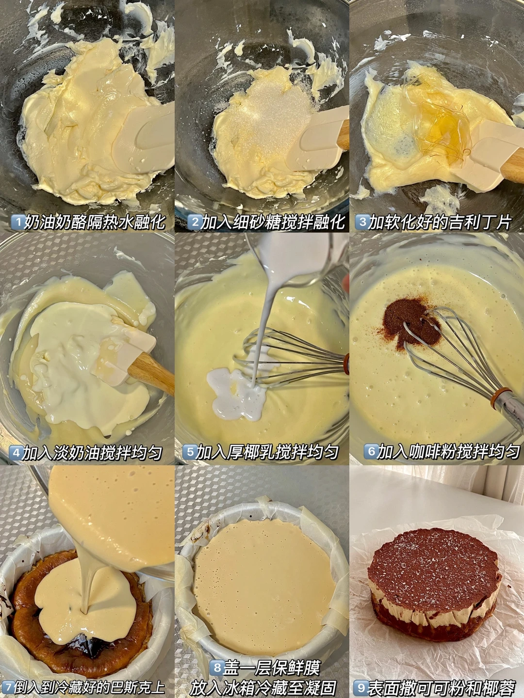 搅一搅拌一拌,冷藏一下,就能做好的生椰拿铁巴斯克芝士蛋糕,不会那么腻,搭配黑咖啡,真的是绝配😋