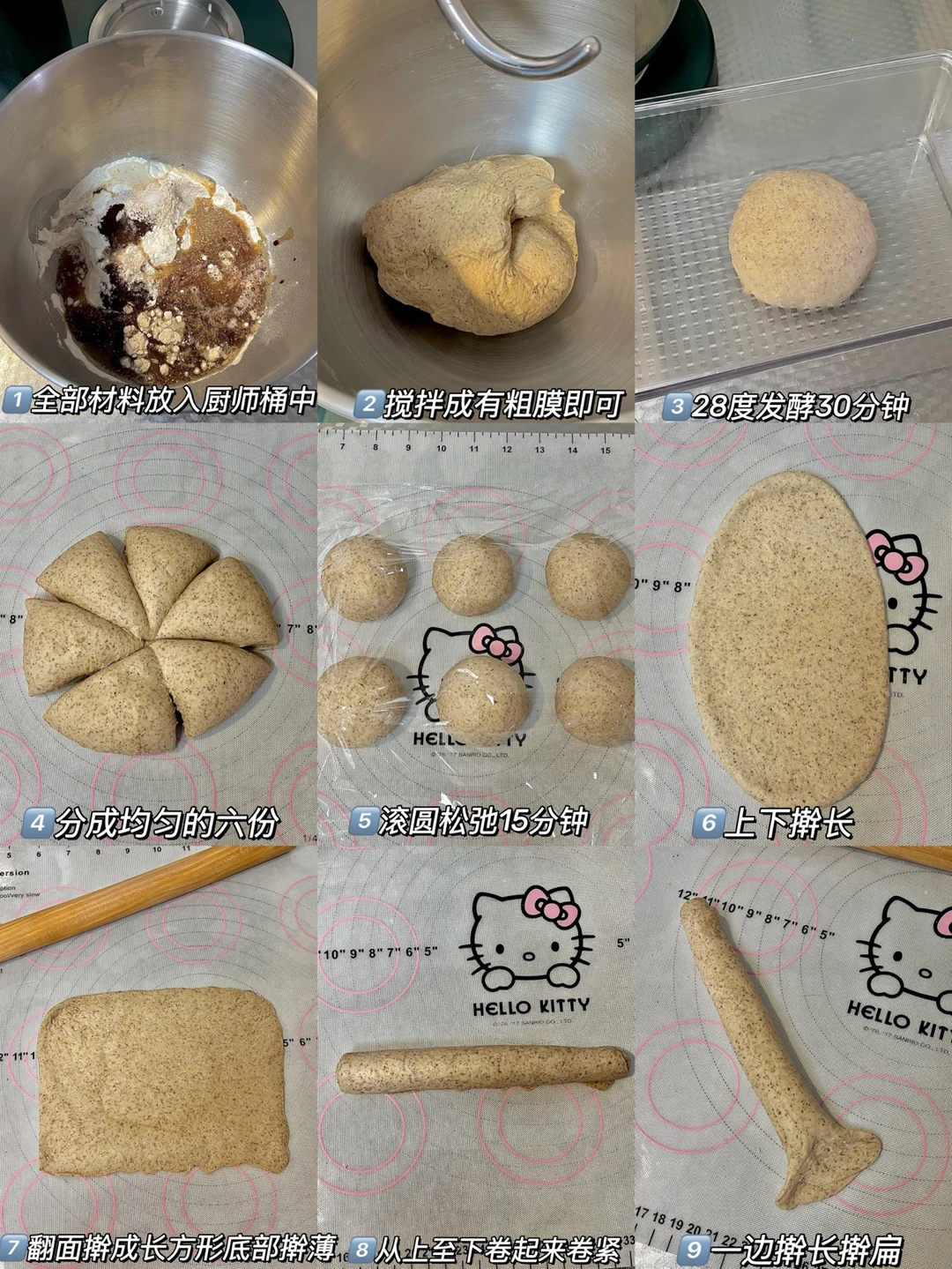 4️⃣分成均匀的六份,滚圆松弛15分钟。