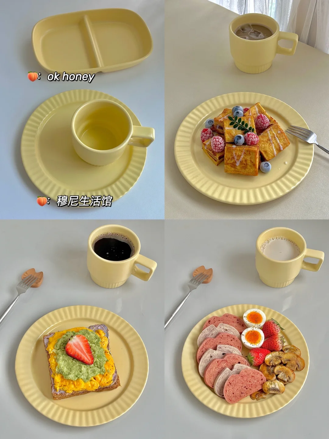 🍴图8️⃣杯子和盘子【穆尼生活馆】这套经常出镜,拍出来比较亮,这家的餐具是颜值控比较喜欢的,都是些可可爱爱很漂亮的,适合拍照。