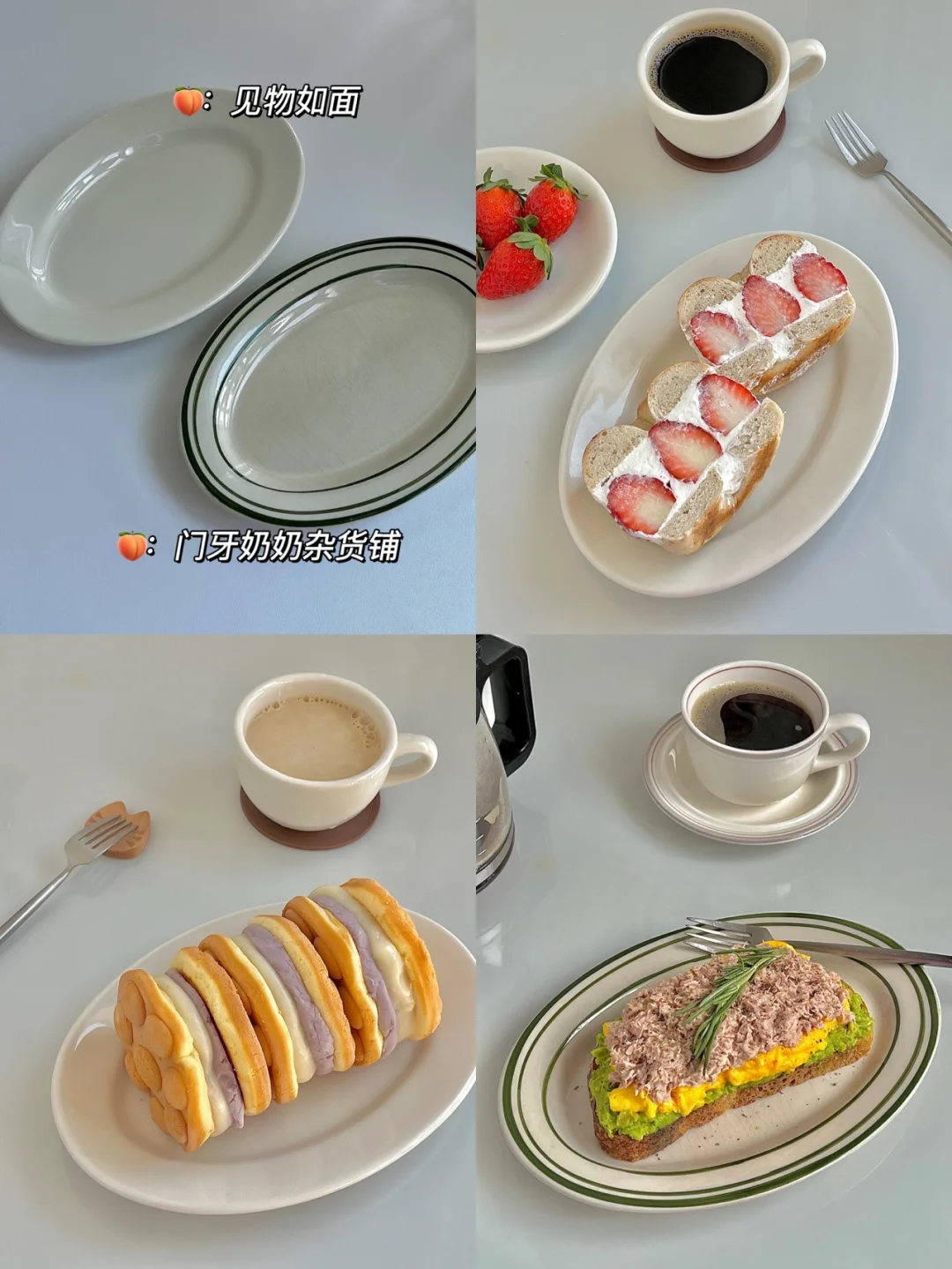 图5️⃣绿纹椭圆盘【门牙奶奶杂货铺】这是我有一段时间最爱的盘子,怎么搭配都好看,很出片,用了好久了,盘子都出现裂纹了,不过还是很喜欢。