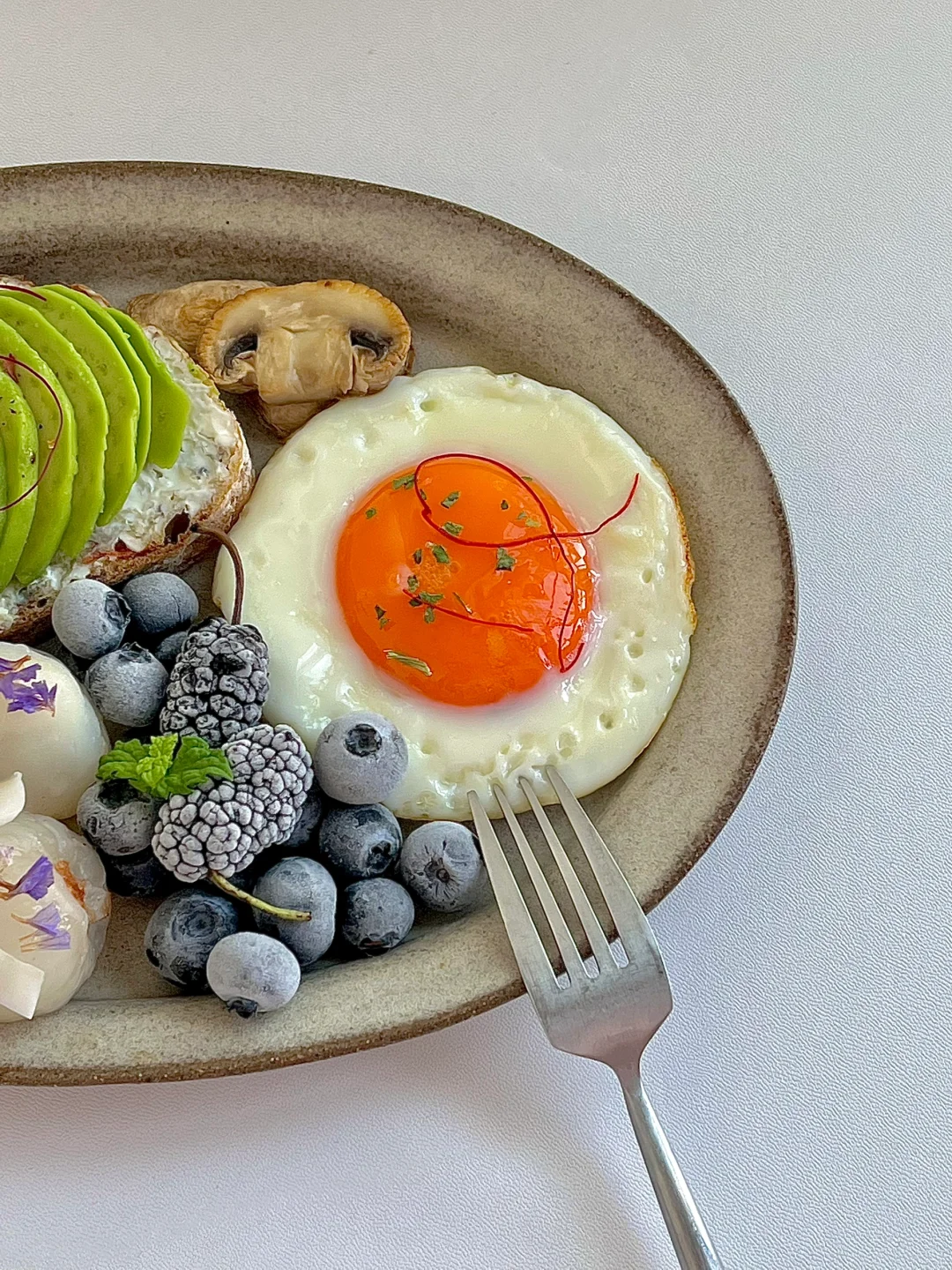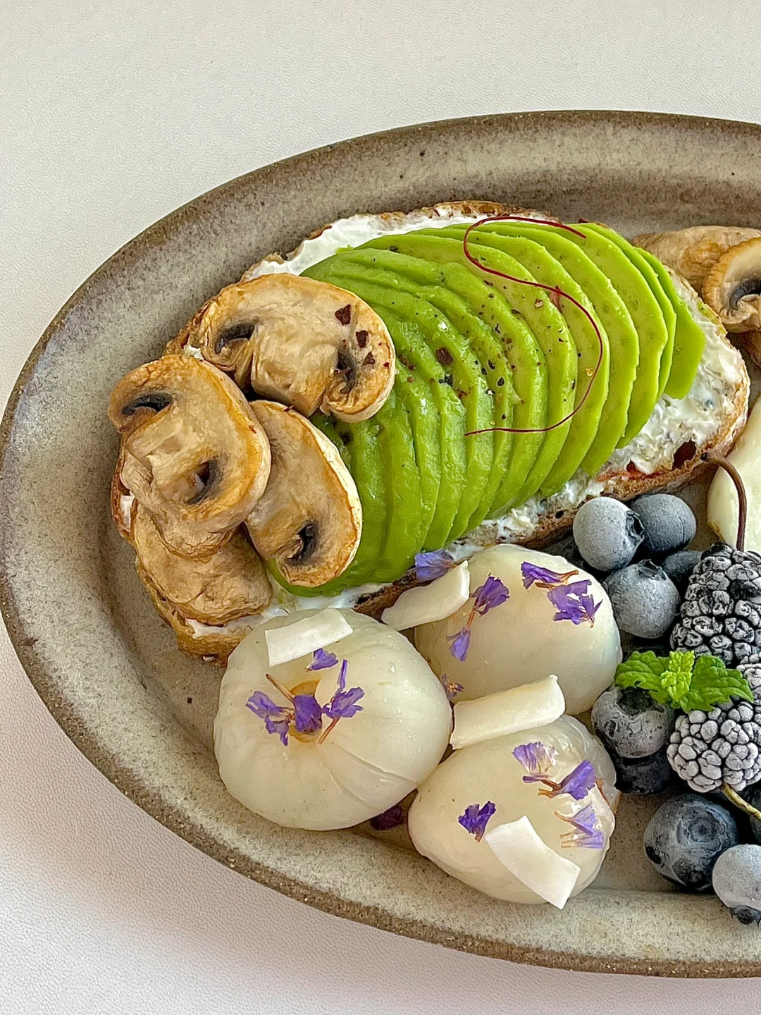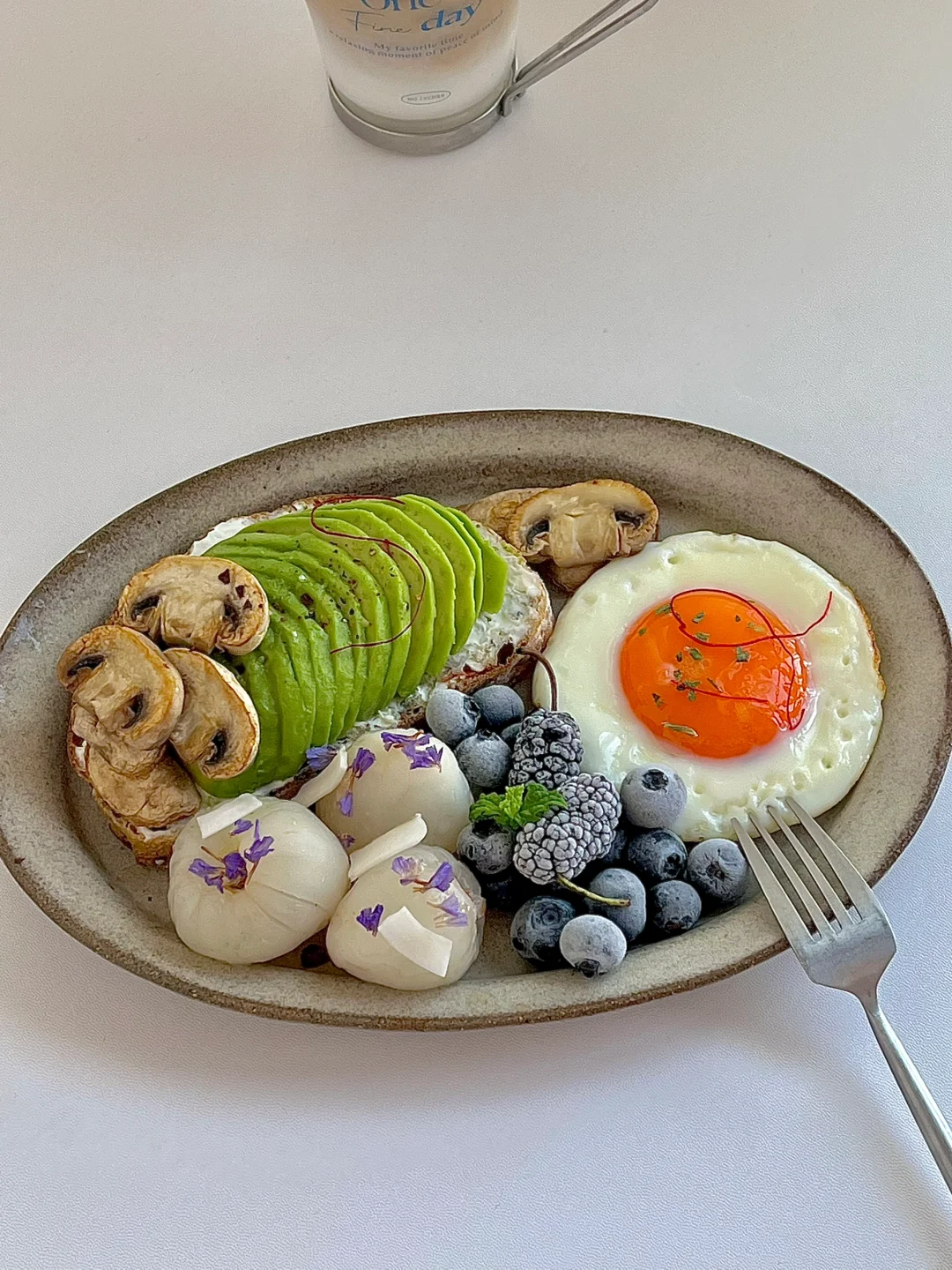 热气腾腾的三餐 今日份早餐分享: 牛油果煎口蘑欧包开放式 煎蛋🍳 荔枝,冻蓝莓🫐冻桑葚 一杯冰拿铁☕️ . 最近的高温天气大家休息防暑 早上来点冰的真的很舒坦😋 新周快乐!