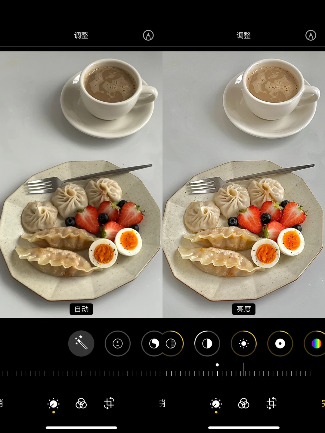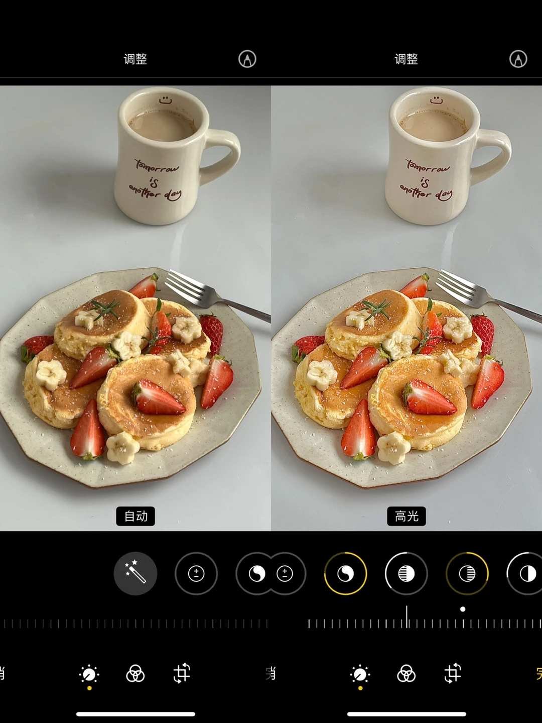 参数最重要的我觉得是鲜明度,高光,色温,锐化这些。不过每个人的审美不同,会有人喜欢冷色调,有人喜欢暖色调,所以这些仅代表我个人的喜好,我喜欢食物有它本身的样子,不需要加任何滤镜,只需要调几个参数就可以了。