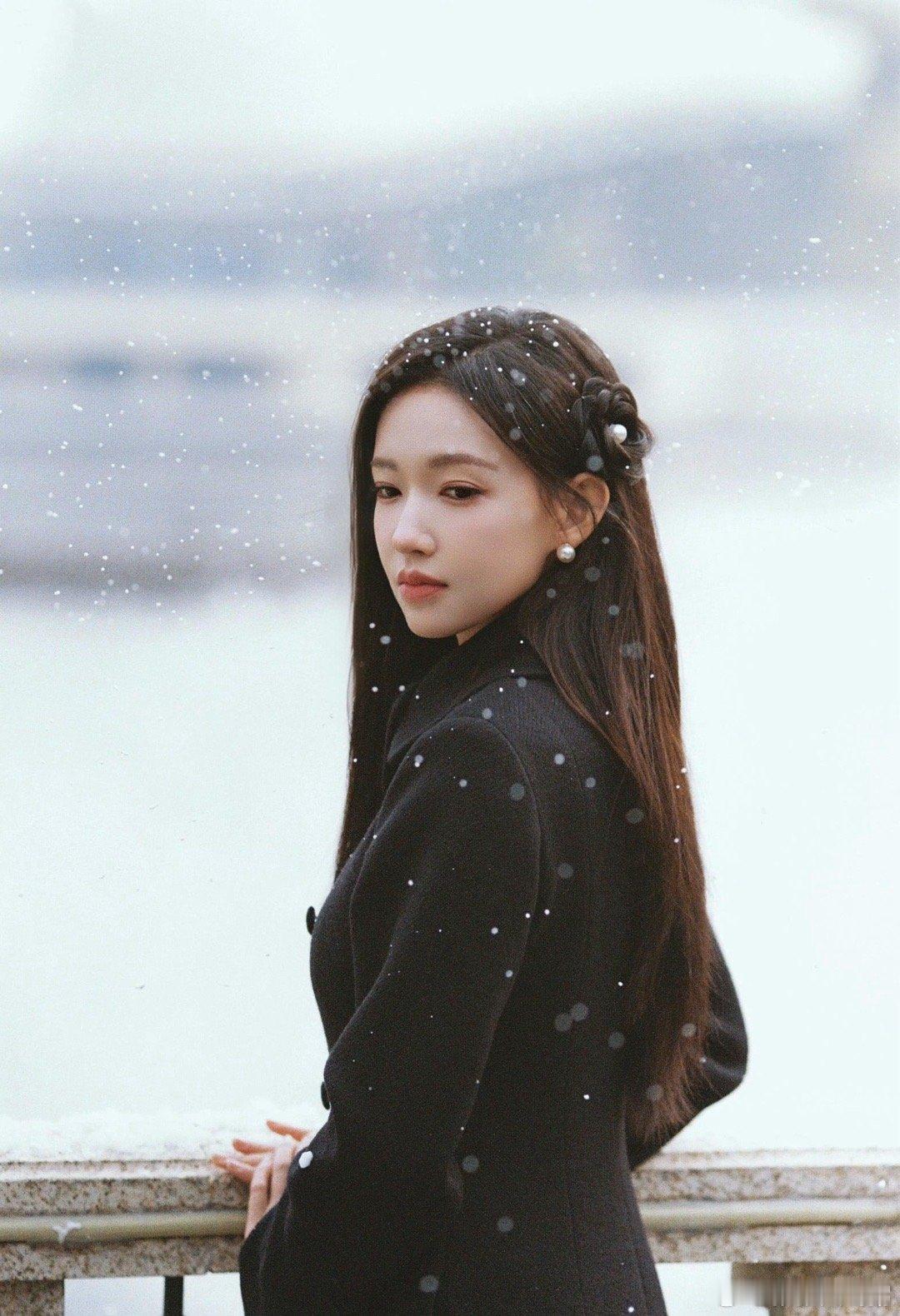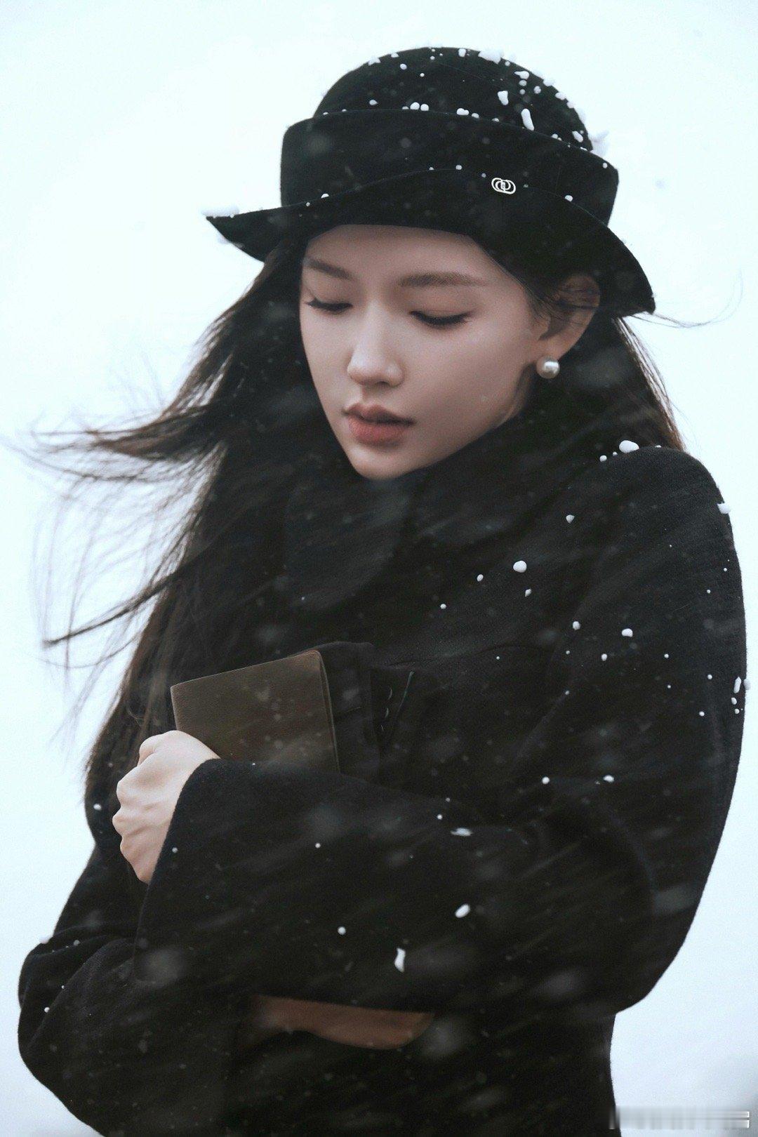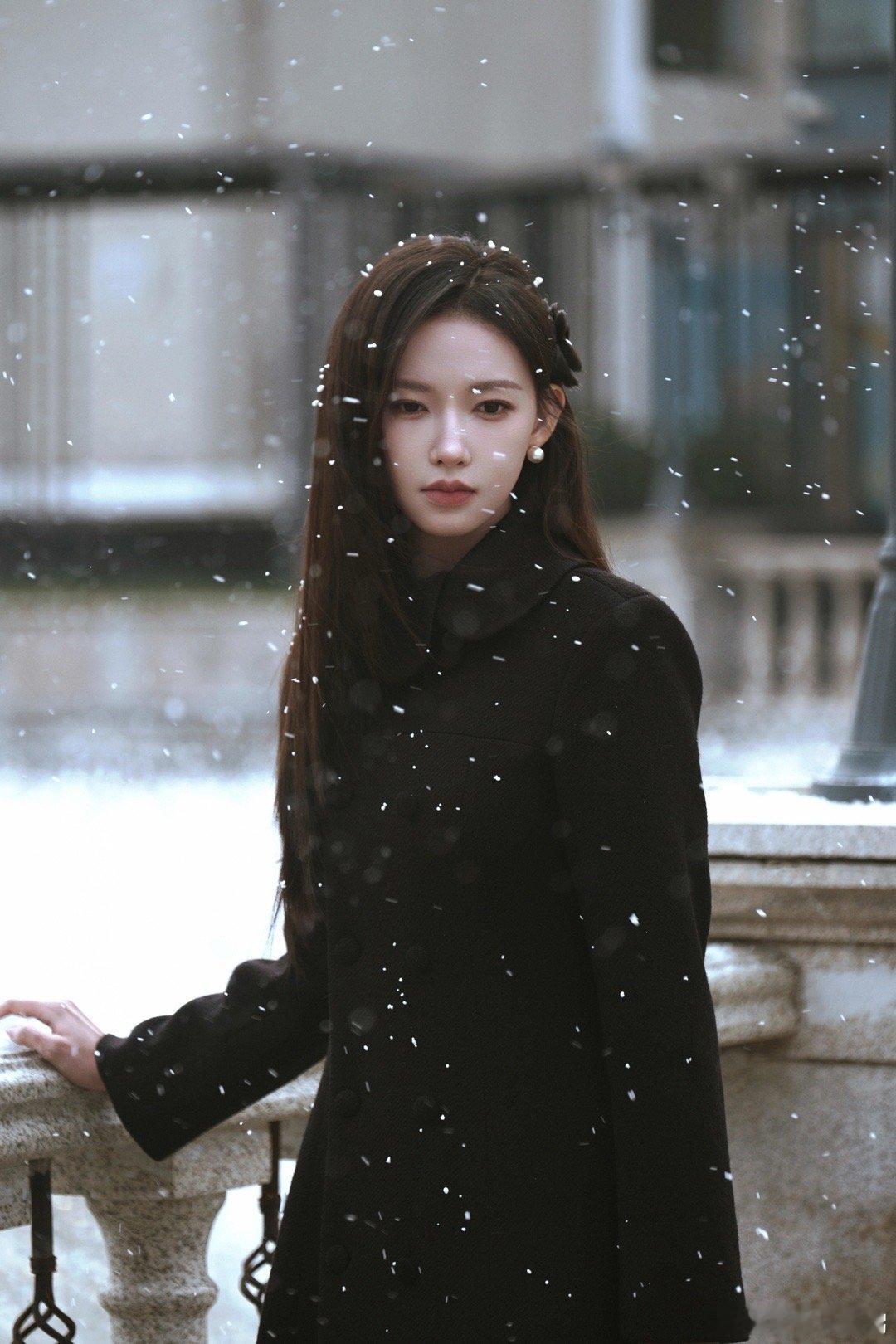 黑裙+落雪=程潇的冷感美学,美得像帧电影截图
