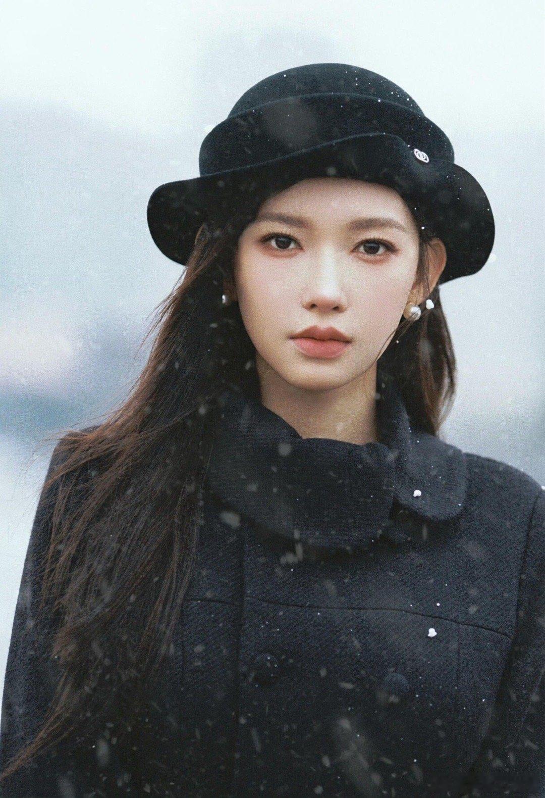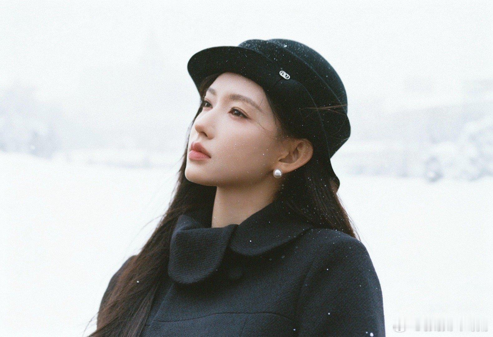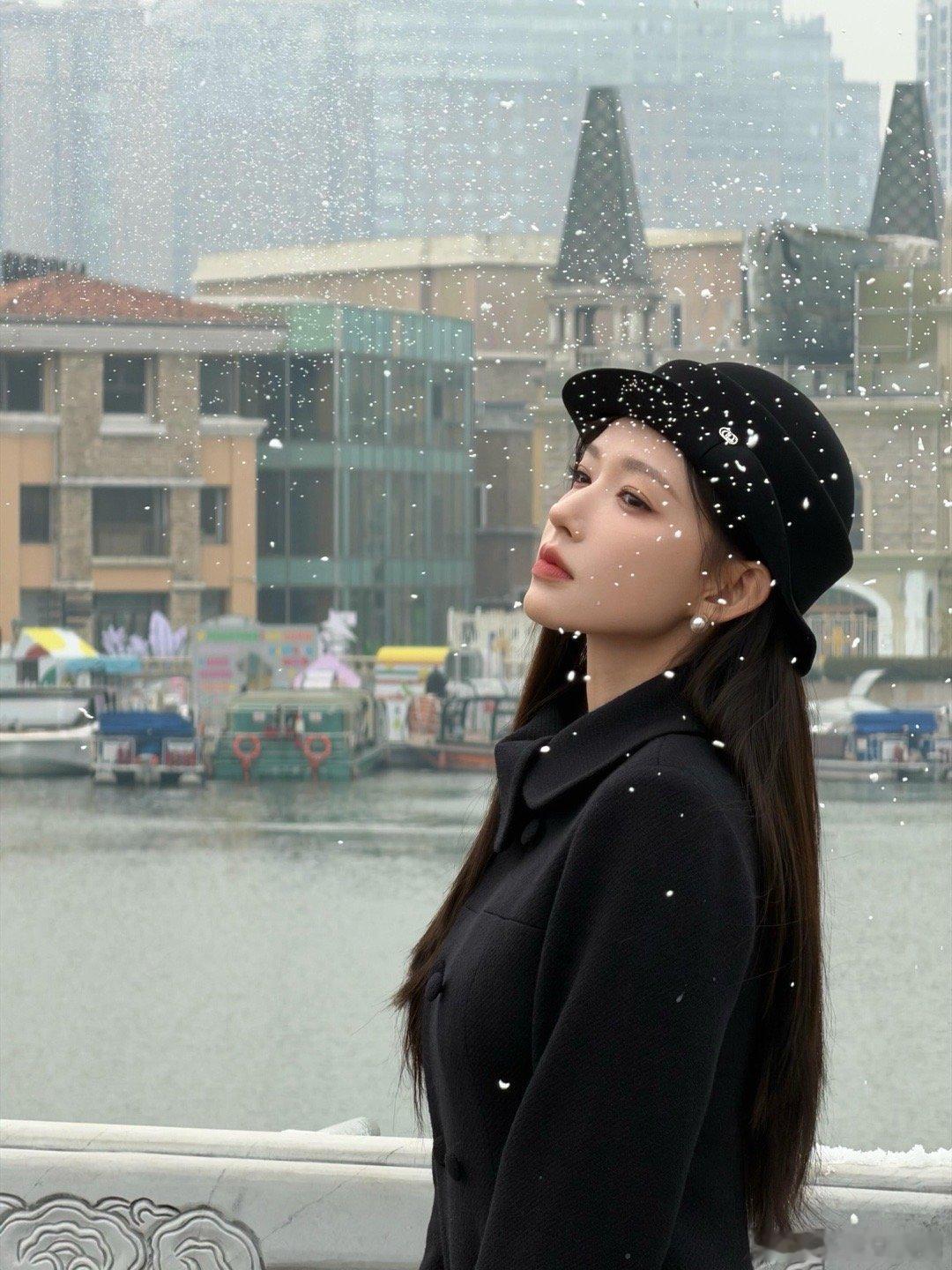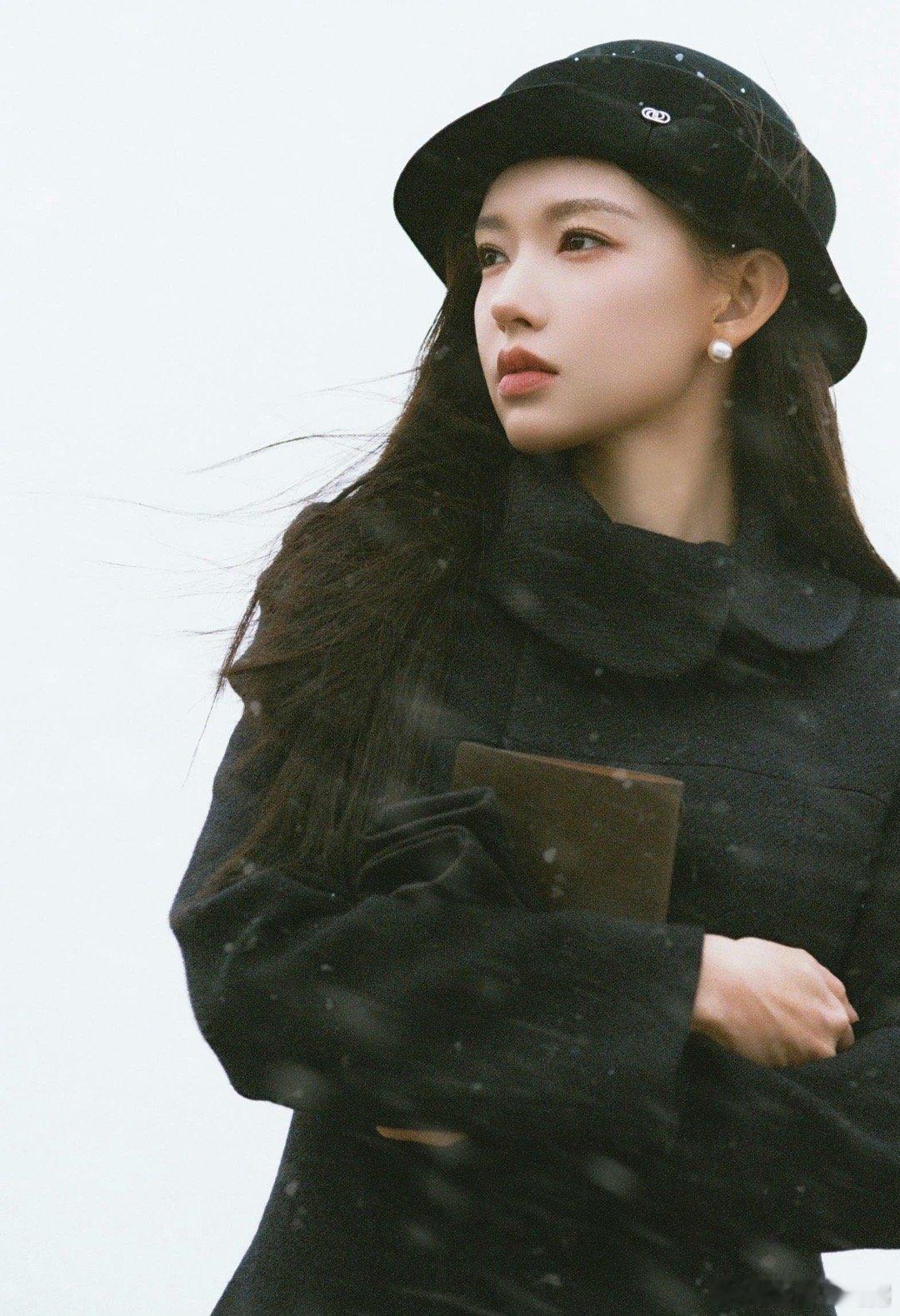 黑裙+落雪=程潇的冷感美学,美得像帧电影截图