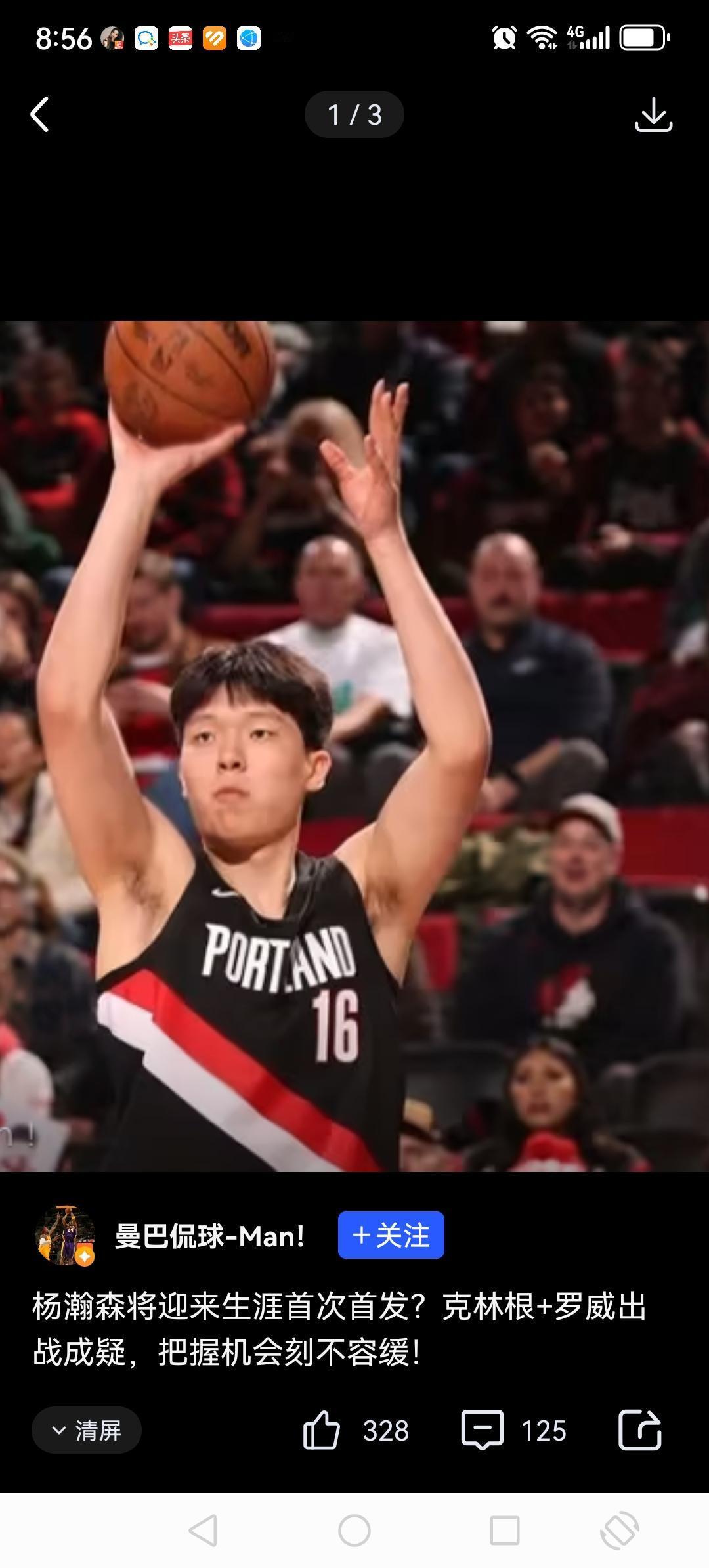 今天在开拓者第1节被雷霆打爆的情况下,第1节最后一分多钟,杨瀚森替补出场。除了得到一个空位的三分外,几乎没有什么亮眼之处。 篮下几次进攻都没有打进,防守不敢做动作,可能是怕犯规。屡屡被人打中,第2节又打了二三分钟,表现还是低迷,教练果断把杨瀚森换下,换上了克林根。 杨汉森你要抓住机会呀,别给你机会你抓不住。进攻软,防守懒,杨瀚森迟早还要被下放到发展联盟。