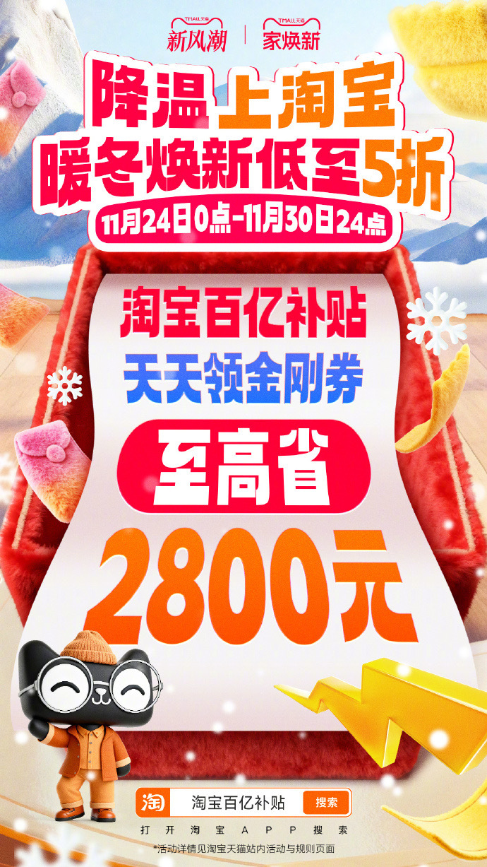 冬天想保暖又不想裹成熊?淘宝暖冬焕新太懂年轻人!超多又暖又美的卫衣、羽绒服,价格还香~ 88VIP领500元券叠国补,四舍五入像白捡!蹲24号0点,风度温度全拿下!