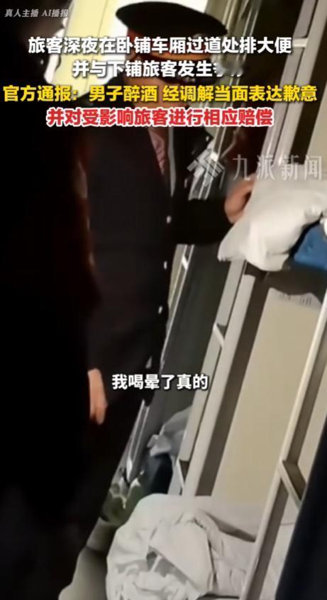 “这口味太重了!”河南南阳,一女子乘坐火车卧铺,睡梦中就觉得周围有臭味传来,睁眼一看,旁边一名男乘客竟然直接脱了裤子在过道中大便,女子连忙联系车上工作人员,就连列车长都表示:工作30年,头一回遇到这种事 据九派新闻11月24日报道,当时是半夜,车厢里大部分人都已经睡着了,整个环境都挺安静的,可就在这时候,卧铺车厢里的一位女乘客被一股特别难闻的臭味给熏醒了。 她一开始还以为是谁脱了鞋没洗脚,可那味道越来越冲,根本不像脚臭味,她心里犯着嘀咕,就眯着眼往过道那边看了一眼。 这一看,她瞬间就清醒了,简直不敢相信自己的眼睛,就在她床铺旁边的过道上,一个男的竟然把裤子脱到了膝盖,正蹲在地上大便。 车厢里光线很暗,但那个画面实在太清楚了,女乘客当时就懵了,感觉胃里一阵翻江倒海,她吓得大气不敢出,赶紧悄悄拿出手机,把这个情况报告给了列车上的工作人员。 没过多久,列车工作人员就赶了过来,他们看到地上的景象,也是一脸震惊,估计也是头一回在车厢里碰到这种事。 紧接着,列车长也来了,他看到这一幕,都忍不住说自己干了三十年铁路,从来没见过这么离谱的。 工作人员走近那个男的,闻到他身上一股很浓的酒味,看样子是喝多了,脑子都不清醒了,可能他自己都不知道自己在干什么,把火车卧铺的过道当成了厕所。 但是,不管他喝没喝多,这事总得解决,车厢里其他乘客也都被这股臭味和动静给弄醒了,大家纷纷探出头来看热闹,整个车厢都骚动起来。 列车长处理事情还挺有经验,他先是拿来卫生纸和清洁工具,让那个男的自己把地上的脏东西收拾干净。 自己拉的,总不能让别人给擦屁股,那个男的在工作人员的指挥下,迷迷糊糊地开始清理现场。 可事情还没完,有乘客发现,那个男的方便的时候,污物溅得到处都是,旁边好几个乘客放在地上的鞋子和行李箱都给弄脏了。 这下子,大家更不乐意了,好好地坐个车,碰上这种晦气事,谁受得了?自己的东西被弄脏了,肯定要个说法。 大家的情绪都有点激动,要求那个男的赔钱,乘警也很快赶到现场,开始从中调解,在乘警和列车工作人员的教育下,那个喝得醉醺醺的男的似乎也明白自己闯了祸。 面对一堆被弄脏的行李和乘客们的指责,他最后同意赔钱了事,经过协商,他赔偿了那些行李受损的乘客一些钱,这场风波才算暂时平息下来。 这件事被传到网上之后,一下子就火了,很多人都觉得这事太奇葩了,说这男的素质太低,就算喝醉了也不能这么干。 在火车这种人挤人的地方干这种事,不仅丢自己的脸,也让一车人跟着遭罪,这事儿也引出了一个问题,就是这男的就赔钱清扫就完事了吗?他的行为算不算违法?要不要被拘留? 其实,这事儿能不能到拘留那一步,还真得看具体情况,虽然他的行为非常恶心,让人没法接受,但在法律上,得看几个方面。 第一看他事后的态度,从当时的情况来看,他虽然喝醉了,但在乘警和列车长来了之后,还是听从了安排,自己动手清理了现场,也赔了钱。 他没有撒泼耍赖,也没有跟人吵架动手,如果他当时要是拒不配合,还大吵大闹,那事情的性质就变了,就属于扰乱公共秩序,被警察带走处理的可能性就很大了。 第二,要看他这事造成的影响有多严重,火车是个封闭的公共空间,他这么一搞,确实让整个车厢的空气变得没法闻,也影响了别人休息。 但好在工作人员处理得快,没有引起更大的混乱,火车也正常运行,如果因为他一个人,搞得整个车厢大乱,甚至影响了列车安全行驶,那后果就严重了,按“扰乱公共场所秩序”来处理他,是完全有可能的。 最后一点,就是喝醉了不能当成什么都不用负责的借口,法律上写得很明白,一个成年人要为自己的行为负责,哪怕是喝醉酒之后干的事,如果喝醉了就能随便犯法,那社会不就乱套了吗? 所以综合来看,这个男的行为虽然极其不文明,但因为他事后还算配合,没有造成更坏的影响,所以最后只是让他清理、赔钱,加上批评教育,这算是一个比较轻的处理结果了。 但这事也给所有人提了个醒,公共场所不是自己家,想干啥就干啥,一个人的行为举止,代表的是他自己的脸面。 不管有什么特殊情况,都不能突破文明的底线,喝醉了也好,内急也好,都应该想办法用文明的方式解决。 一时糊涂,不仅让自己丢人现眼,还给别人带来巨大的麻烦和恶心,这种事,希望以后再也别发生了,大家出门在外,都讲点公德心,共同维护一个好环境,这对自己对别人都好。 信源:九派新闻2025年11月24日——官方通报醉酒旅客卧铺车厢排大便 :经调解当面表达歉意,并对受影响旅客进行相应赔偿。