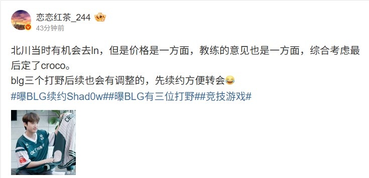 圈内人:北川有机会去LNG但最后定了Croco BLG三个打野后续会调整