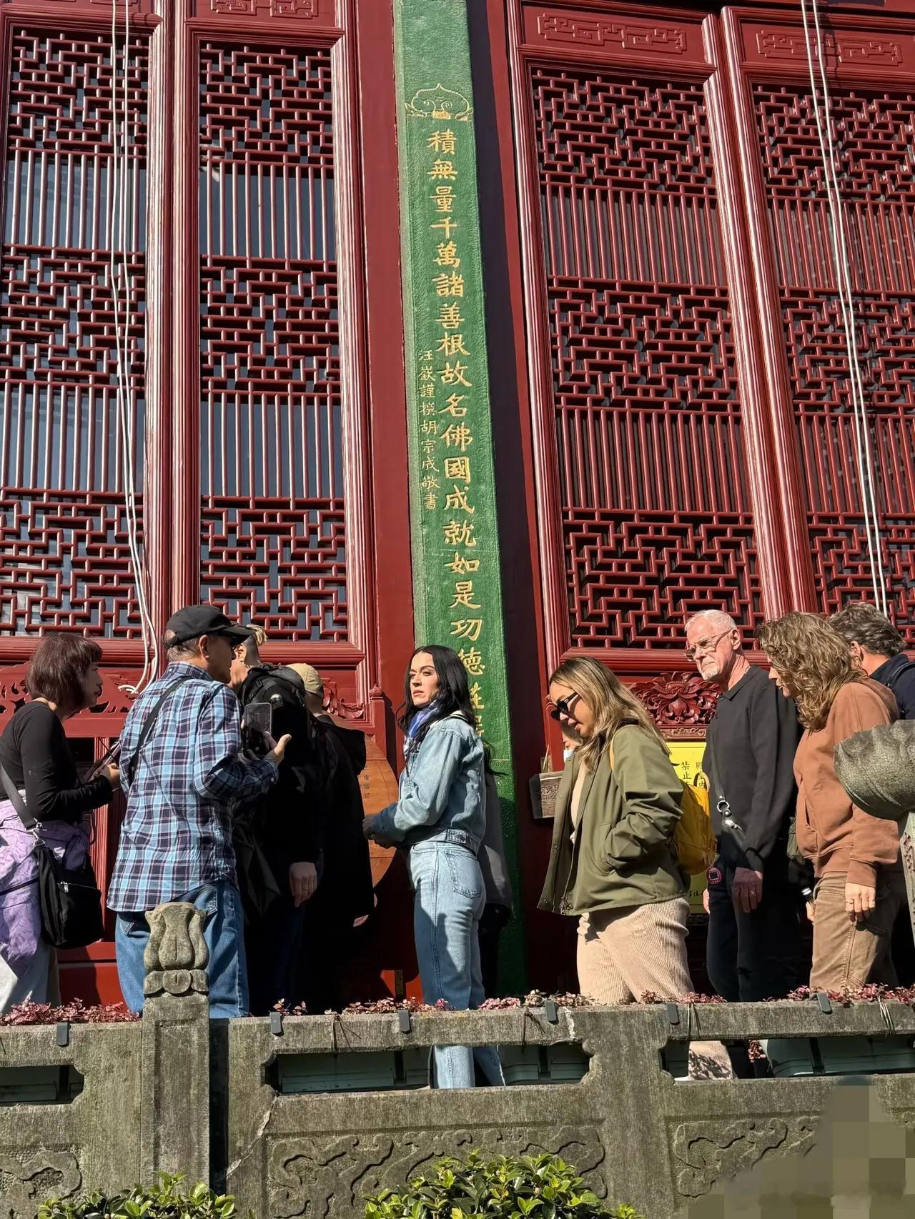 11月23日,美国知名女歌手水果姐(Katy Perry)现身中国的杭州灵隐寺烧