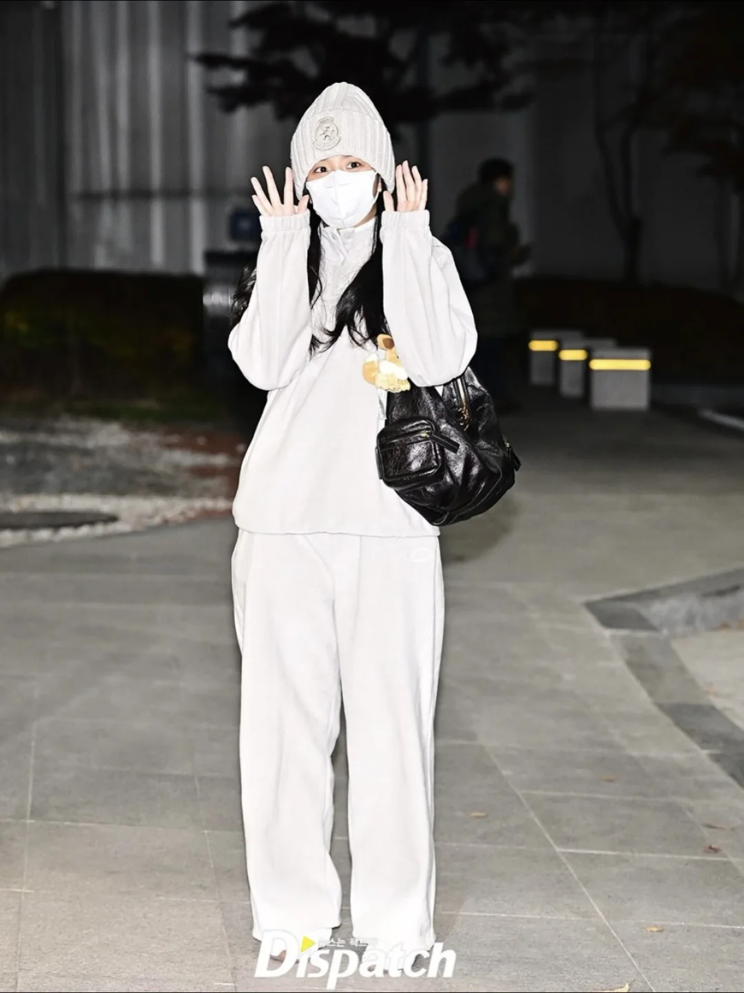 金智秀最新机场穿搭|奶fufu套装可爱舒适🥰