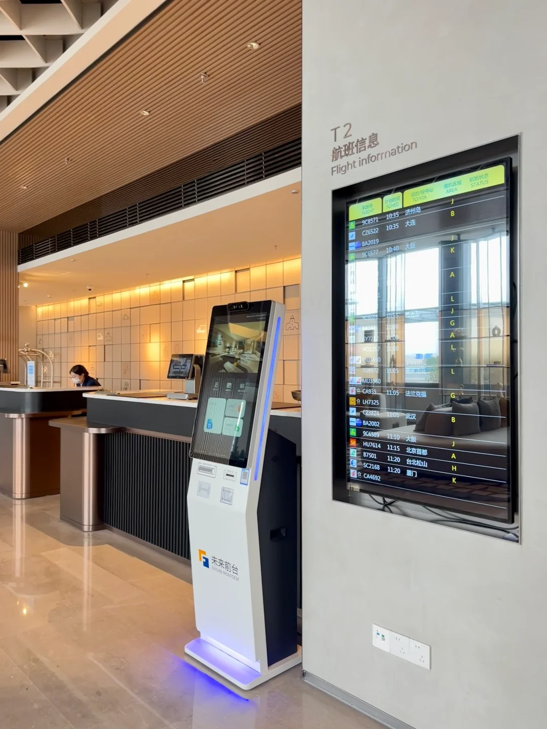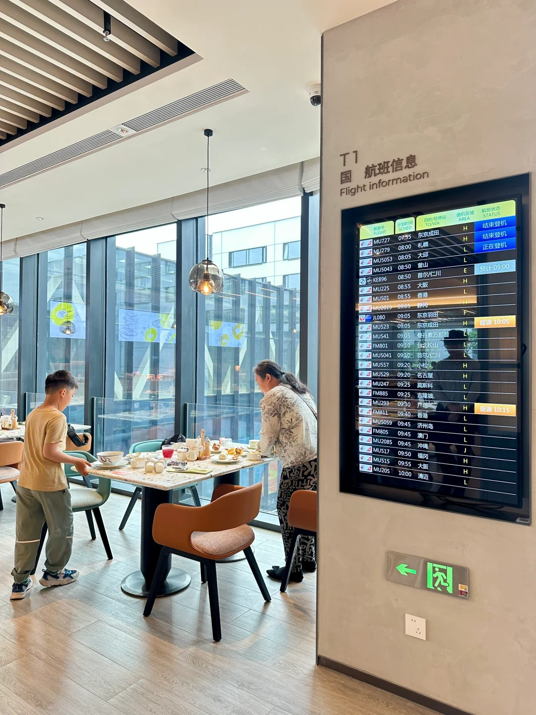在酒店大堂和餐厅,均有航班实时动态展示屏,跟航站楼里的同步,航班一目了然!
