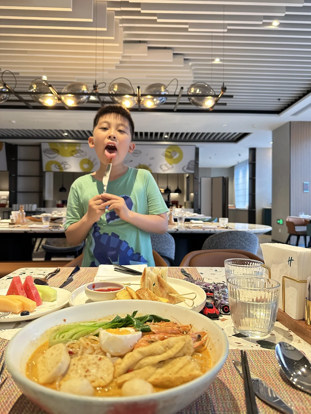 不得不说下探迹餐厅🍴,自助早餐菜品丰富,中餐和晚餐🍛有苏式汤面🍜,东南亚特色菜,儿童餐,工作人员跟我们说,他们家菜谱是通过精心挑选出来的,还有询问我们是否满意,有什么建议,真的很用心👍