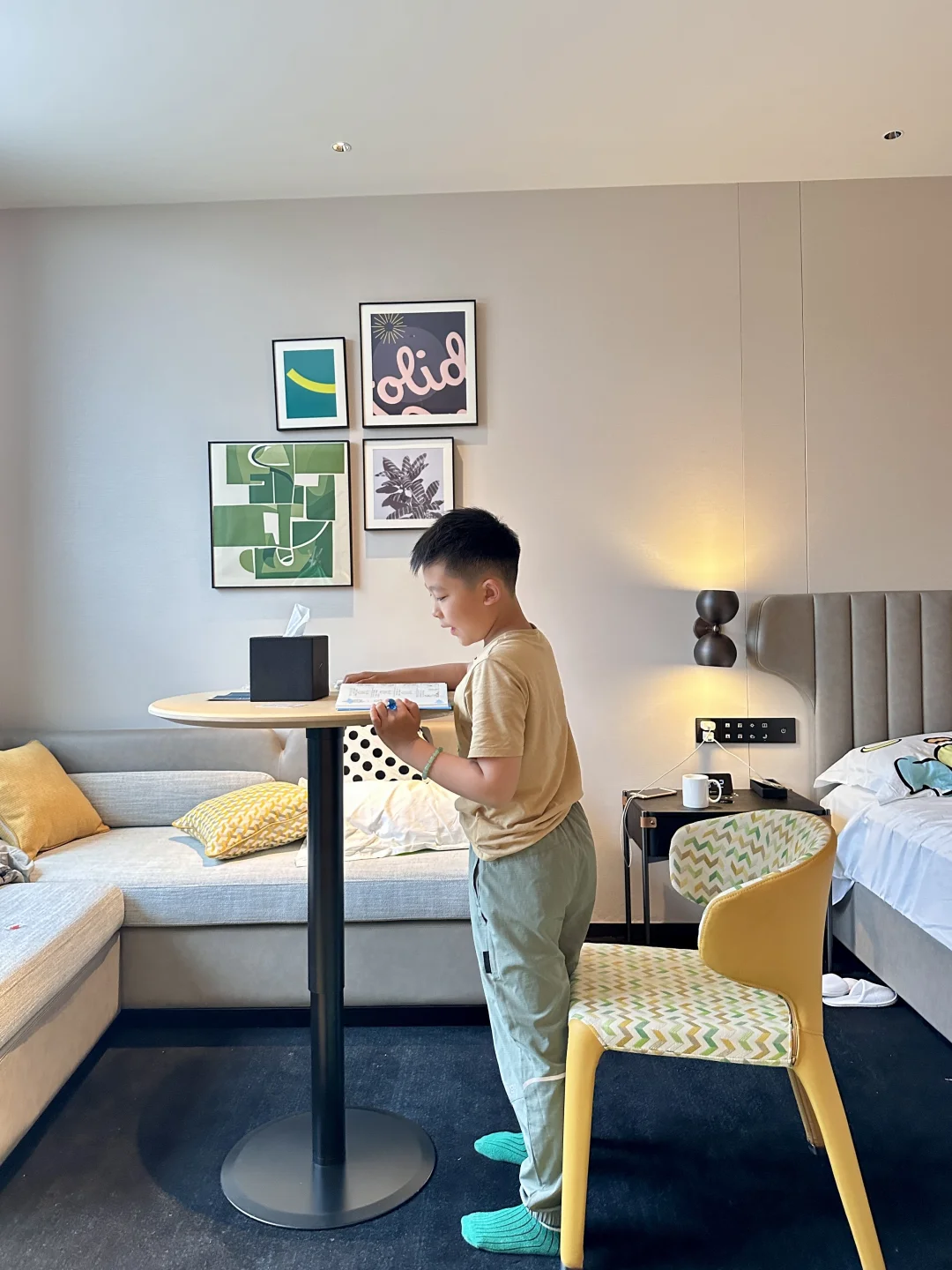 在寸土寸金的浦东机场里,我住进了宽敞的亲子房间,55 英寸平板电视机、可升降多功能桌、床头无线充电,在房间里就能看到机场跑道,飞机根本看不过来。