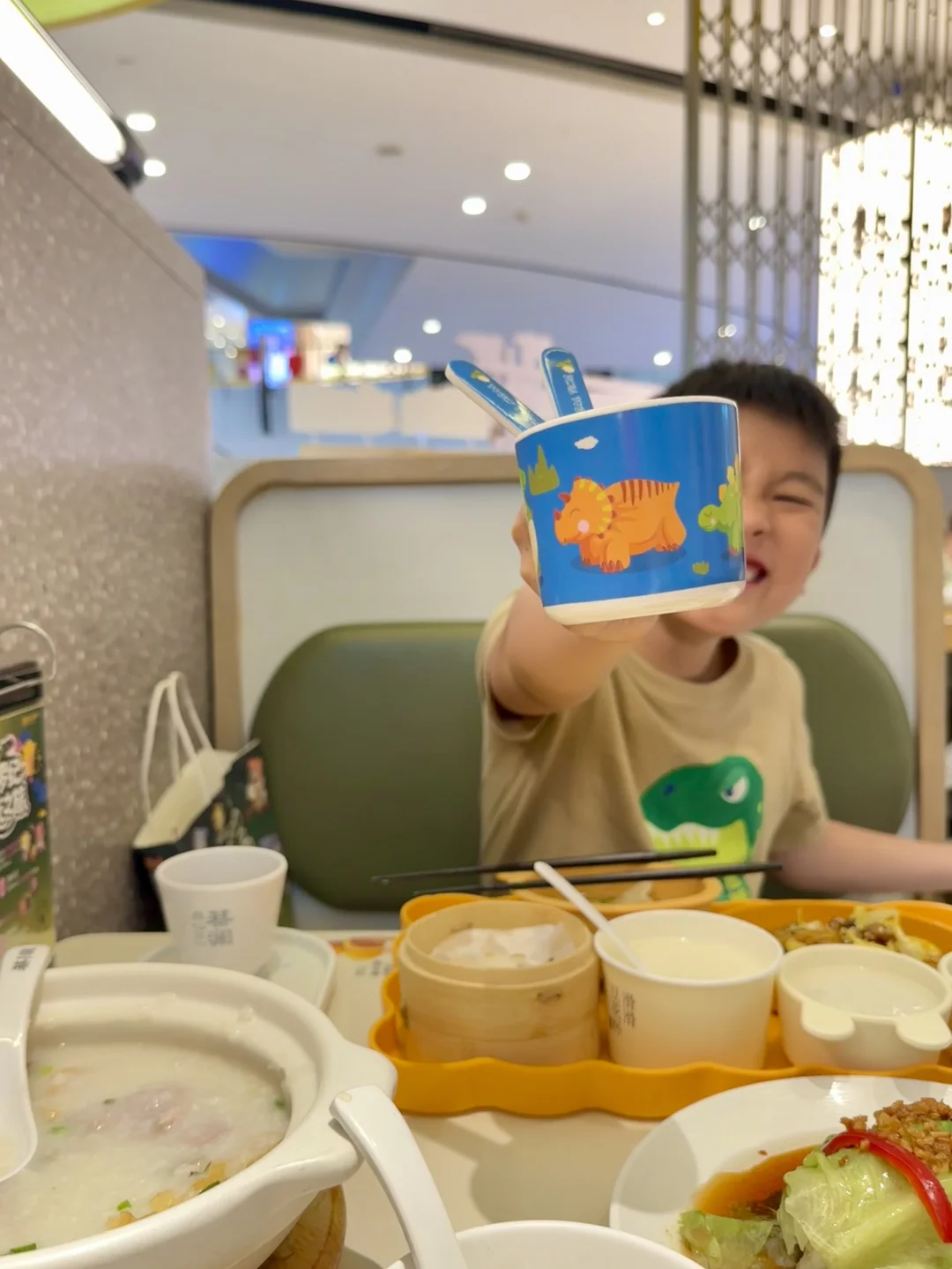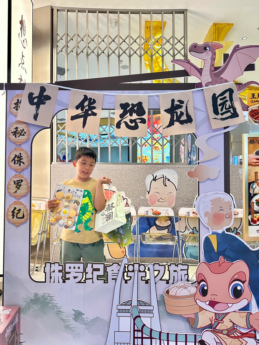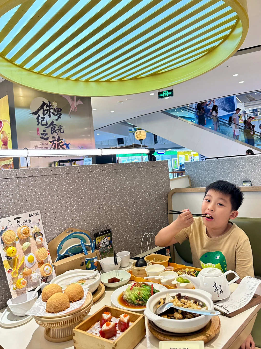 小家伙直奔三层一家餐厅!原来是蔡澜点心🍴把恐龙🦕园搬进来了,那就在侏罗纪食光之旅,吃个晚饭吧🥣!