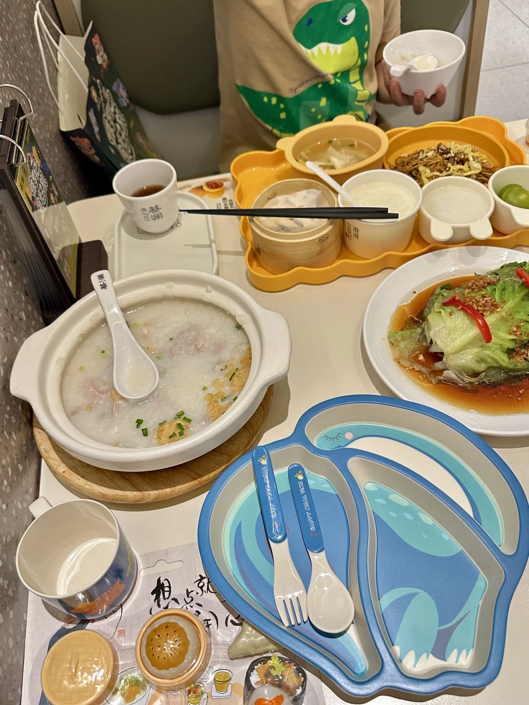 蔡澜点心和中华恐龙园合作的侏罗纪食光之旅还蛮丰富的,小朋友吃的儿童餐有很多种类,主食还可选(小云吞或叉烧肠粉),挑食宝宝也不怕没吃的🥣。