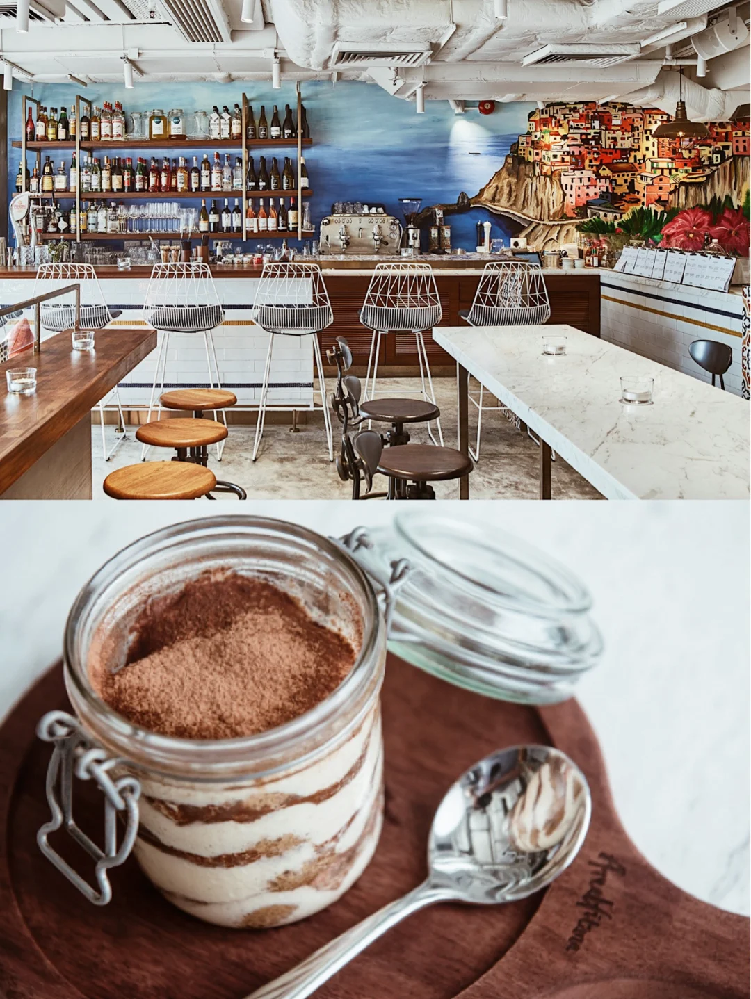 Amalfitana开放式的空间,可以欣赏浅水湾美丽的海景,阳光洒进来,阿玛尔菲海岸的壁画,意大利进口的巨大绿松石瓷砖Pizza烤炉,让人觉得welcoming,却也有点laid-back, 太适合这般炎热的午后,一杯冰饮或鸡尾酒,和朋友小酌聊天。