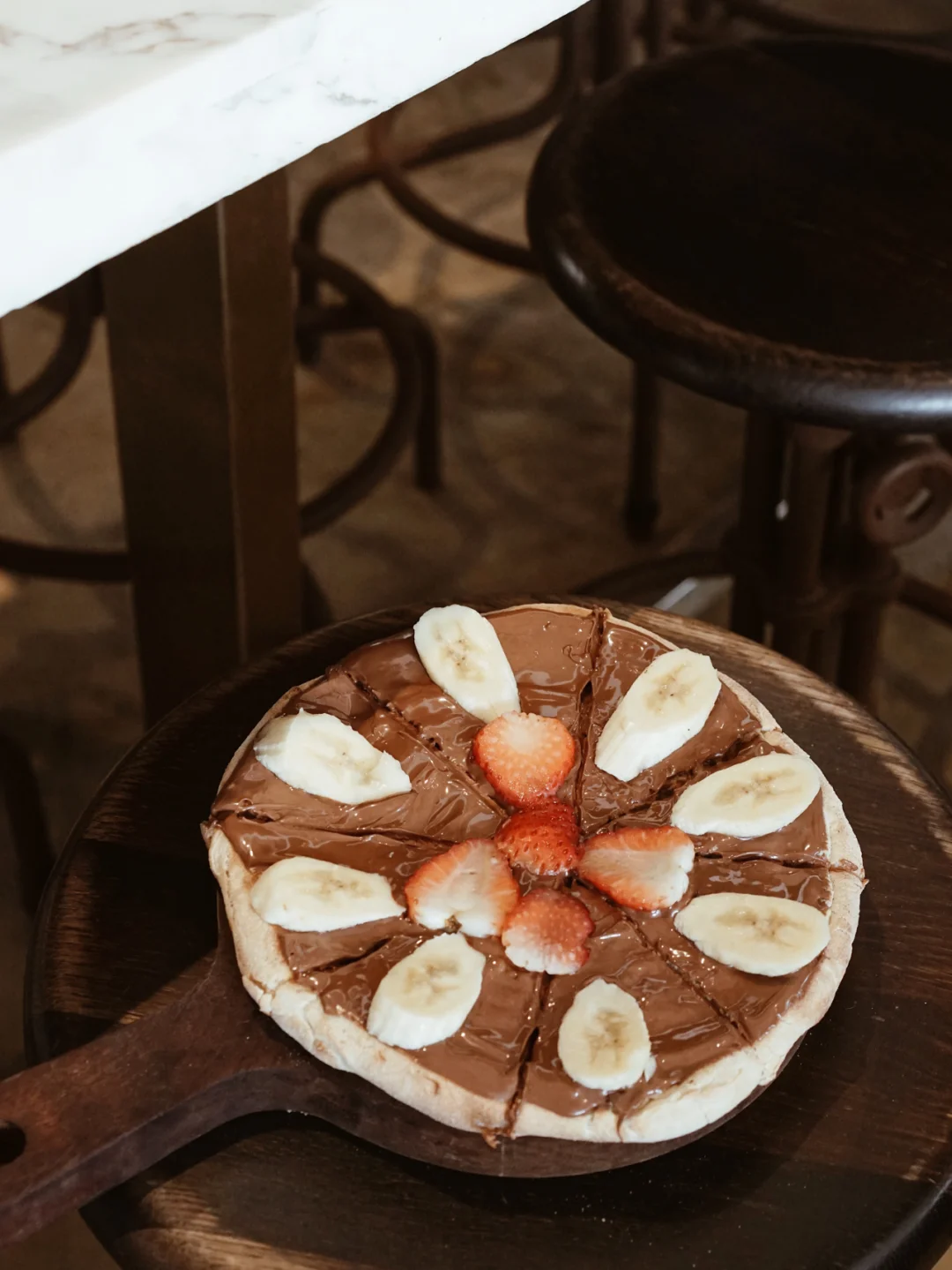 另外,我还叫了一个Nutella pizza,Nutella伴着香蕉、草莓和Pizza,味道很特别。我觉得小朋友会爱到不行。