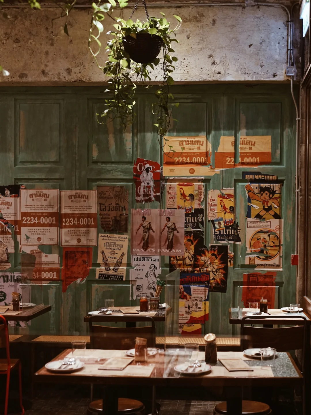 🍜 Samsen是过去华人和泰国人做生意会面的地方。在泰文中有三面之意。和湾仔店一样,是由澳洲名厨Adam Cliff主理。:上环店也同样是复古的家具,斑驳的墙壁,古老小摊贩陈设,泰式铁招牌,年代感的海报,绿植和吊灯,浓浓的轻松自在的泰国街头氛围。但上环店就大很多,据格格老公说,是旧式的骑楼打通了阁楼,所以整家店很开扬亮堂。