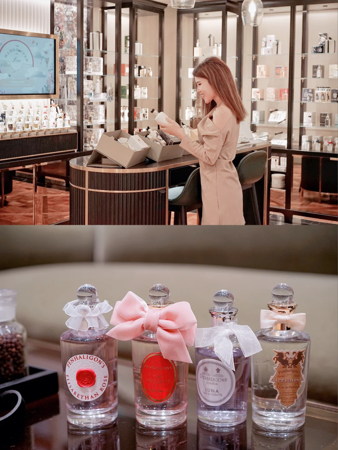 1⃣️图1-图4: Penhaligon’s (潘海利根):如果你喜欢这个皇室顶级香水,那么K11 MUSEA是必去朝圣的。其中肖像系列,视线无法离开它们,作为家具装饰品也再高级不过。店员和我介绍了一战期间品牌的历史,触动了我。我选了Lothair,这是一款中性香水,有一种由内而外的木香,舒服却不aggressive,我一闻倾心,外形则是loyal blue的蝴蝶结,还刻上可我的名字。