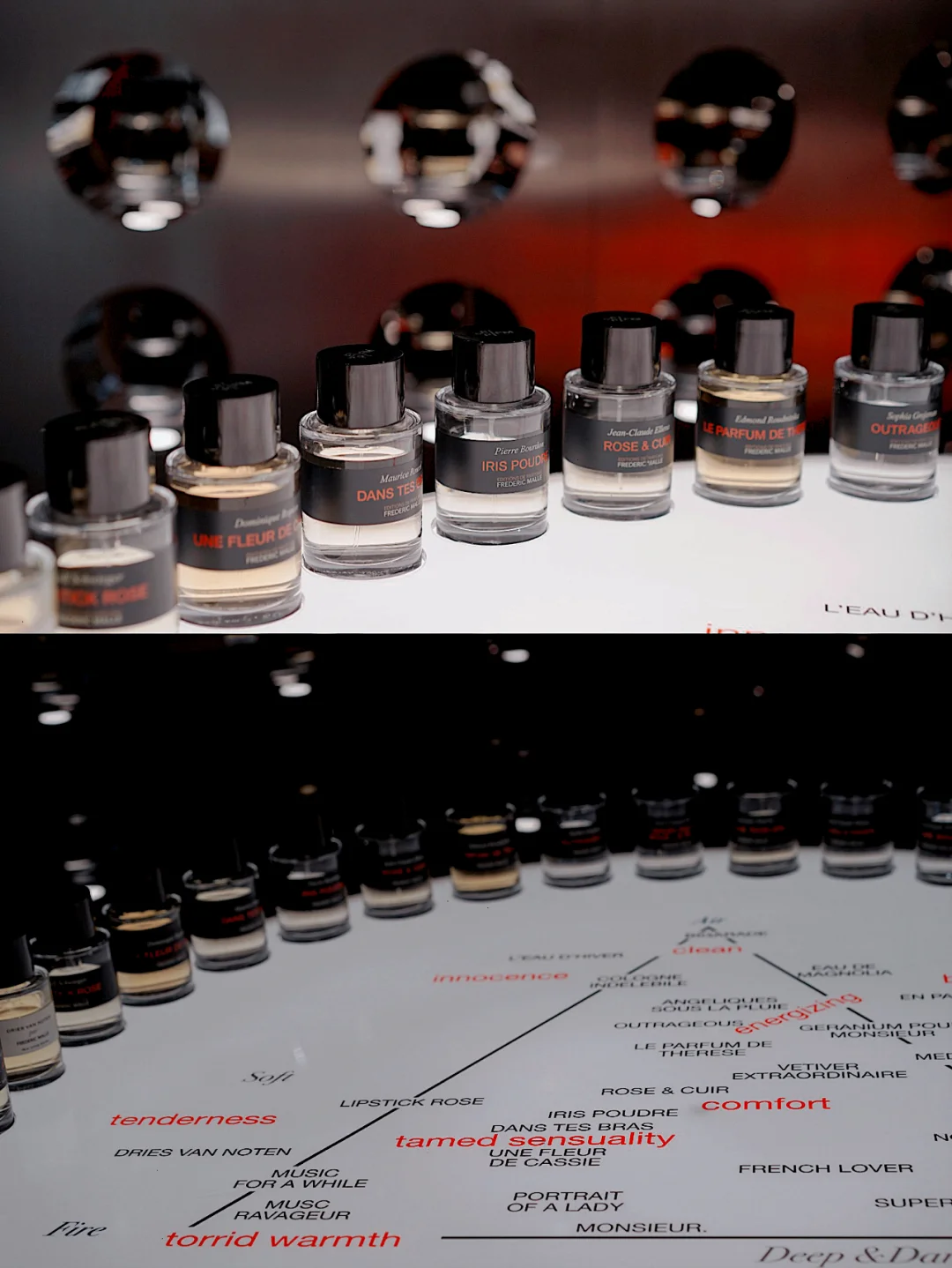 2⃣️图5-图6: FREDERIC MALLE,巴黎顶级香水,是权志龙和王菲的私藏香,王菲的“UNE ROSE”是用800多玫瑰精萃而成,后调却散发着海狸香和香根草的味道,实在欲罢不能。品牌瓶身撇除了多余的装饰,连门店的金属墙都是由FM本人亲自设计,很有太空感。