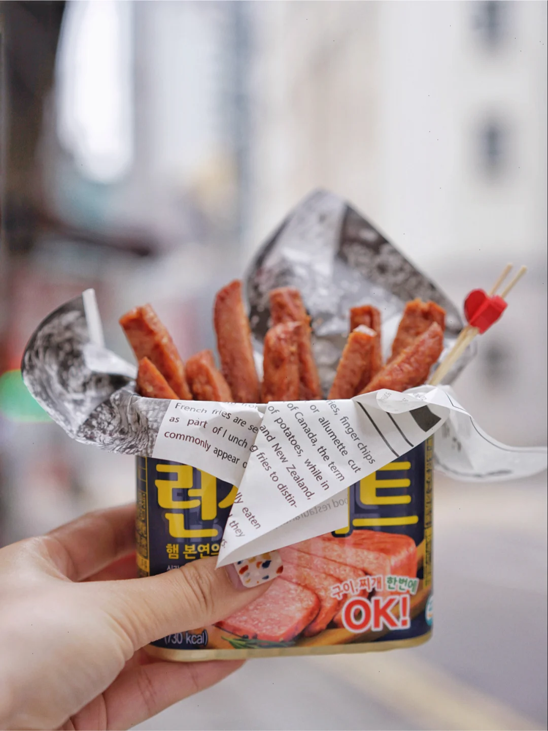2⃣️Spam Box(午餐肉薯条):不仅造型非常instagramable, 而且味道真的非常赞。韩国品牌的午餐肉先烘后焗,外皮略催,内里松软,我连叫两个。