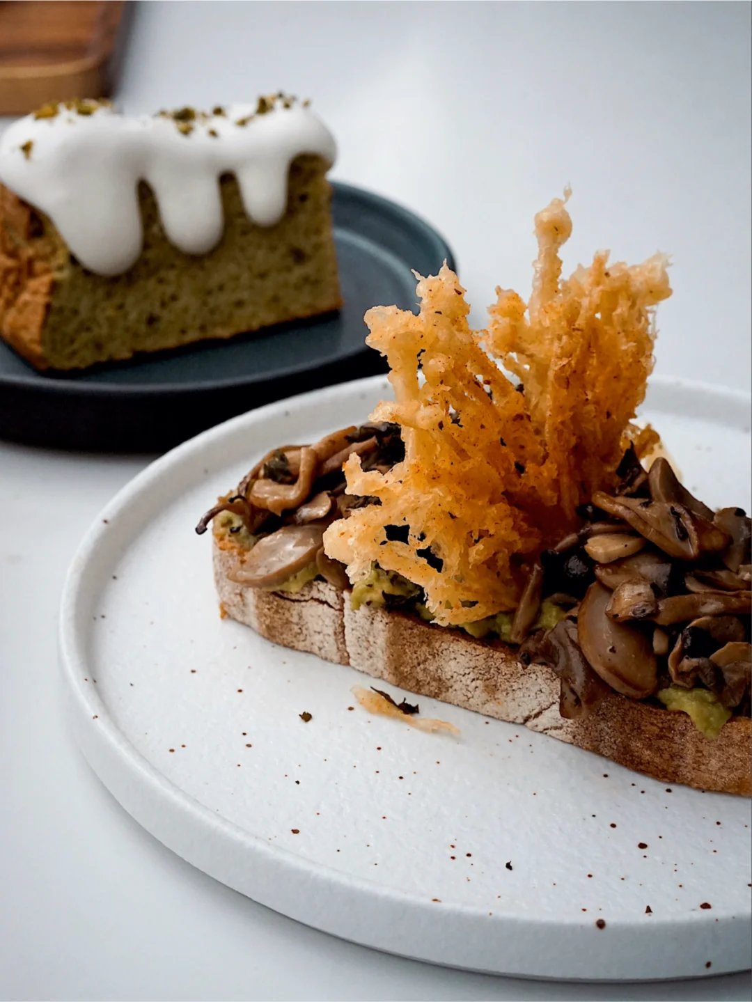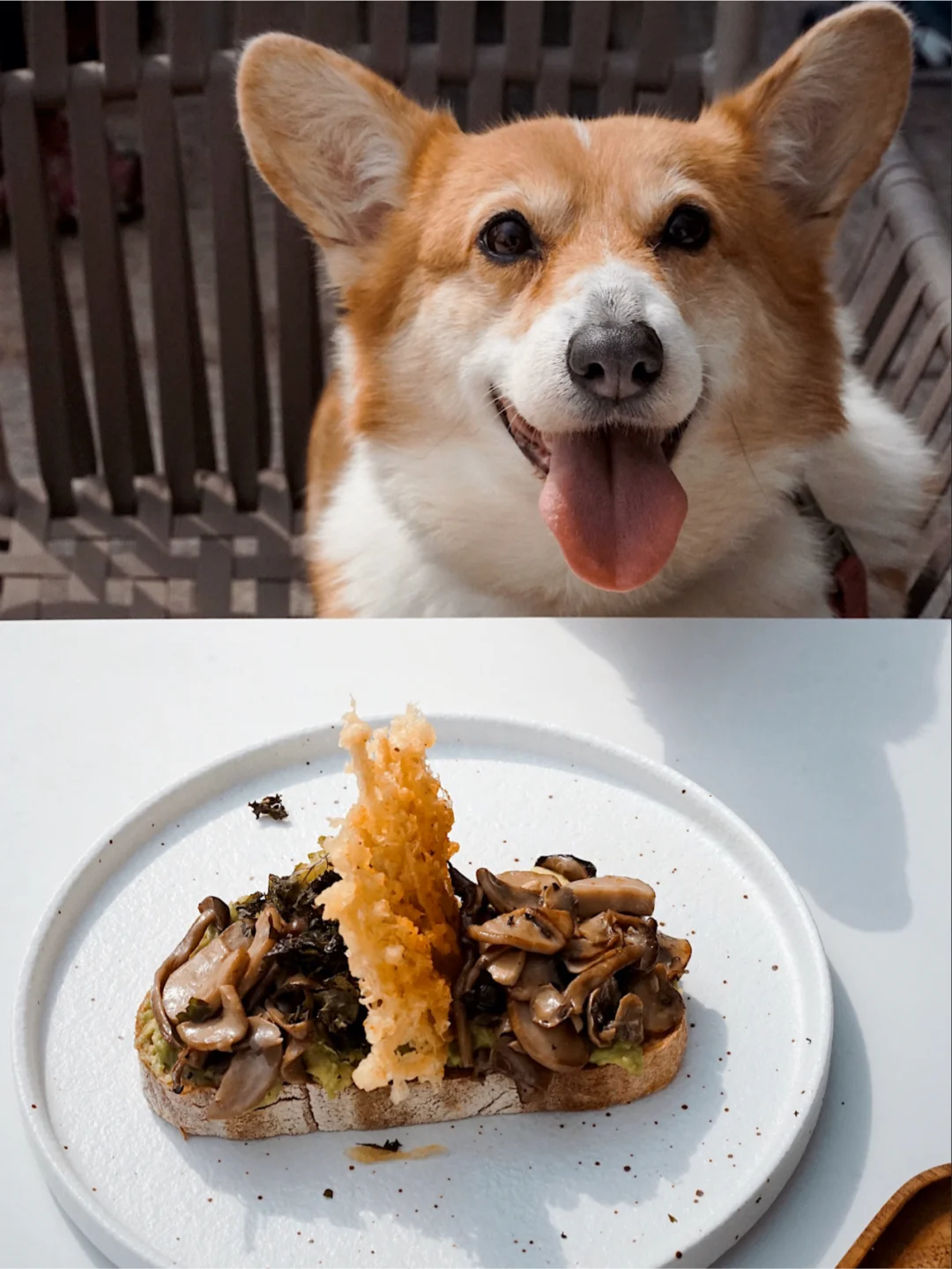 3⃣️炸炸菌羽衣甘蓝牛油果酱酸种面包:杂菌的造型有点浮夸,但我家狗狗馋到流口水。我很喜欢面包上的冬菇和蘑菇,很入味,口感很好。