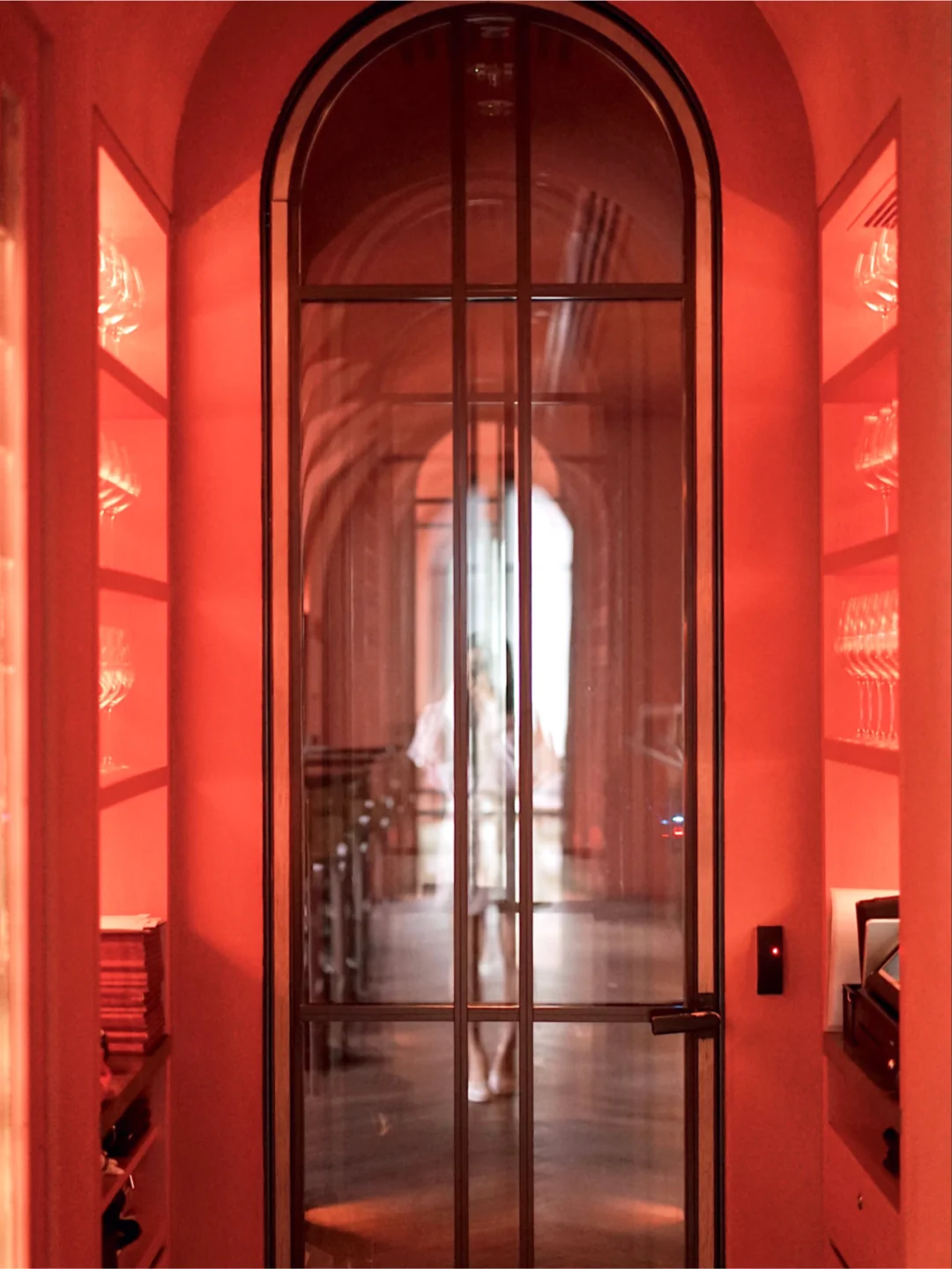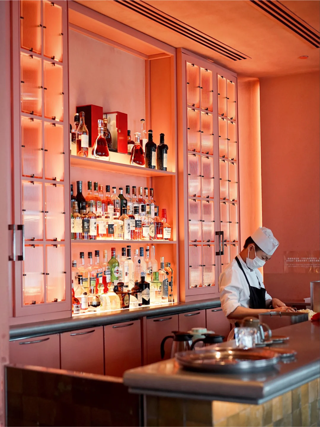 Arbor在拉丁文中是“树”的意思,风格也是柔和的earth tone。墙面被红褐色的粘土覆盖。酒窖是一个贯穿的拱廊,黑色门框层层递进,有种交叠的美感。用餐区域很有空间感,非常开扬,户外中环的城景一览无遗,给人悠然的用餐体验。