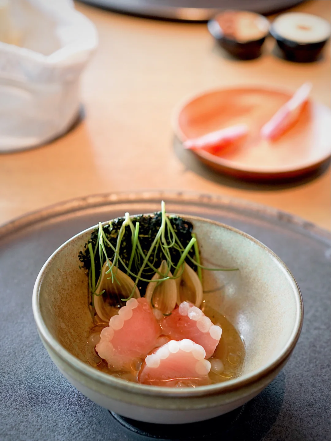 3⃣️White Bonito: 鰹鱼刺身伴着海藻,味道清新,齿有余香。