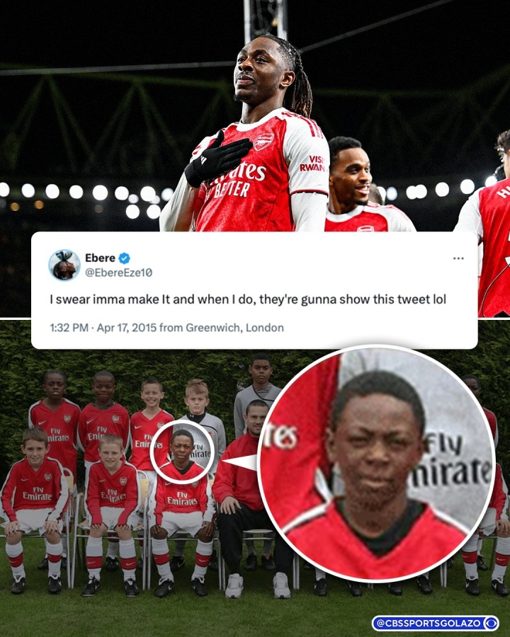 埃泽8岁就进入阿森纳青训体系,13岁离开枪手。如今重回母队的他,在个人首次北伦敦德比中就用一记帽子戏法兑现了自己当初许下的诺言。