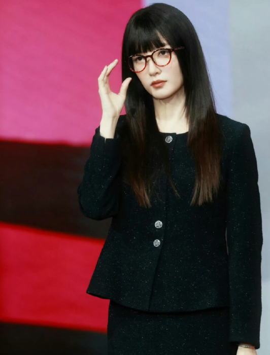 江疏影风格大变了,吓一跳啊完全看不出来了,齐刘海戴眼镜,感觉状态不是很好,面相也
